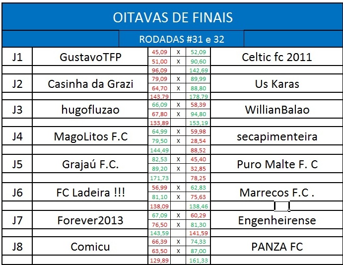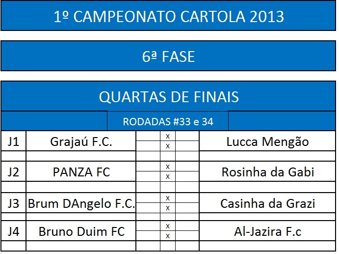 Clique aqui e veja a tabela do torneio Atualizada.