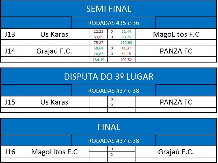 A Grande Final do campeonato mais importante do blog está definida!!! Parabéns aos finalistas!!!