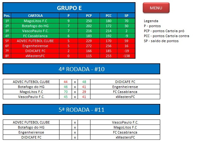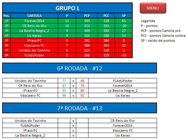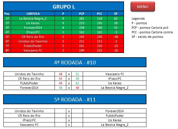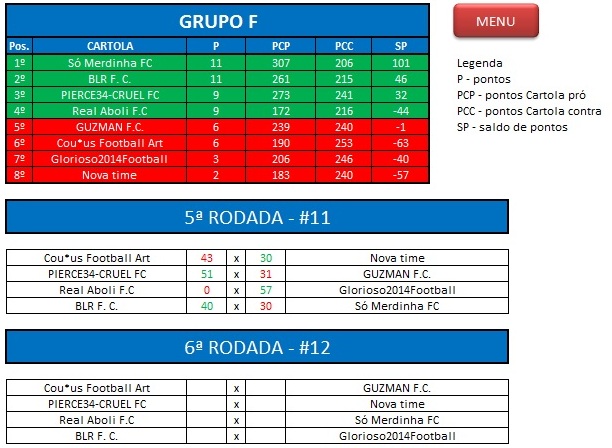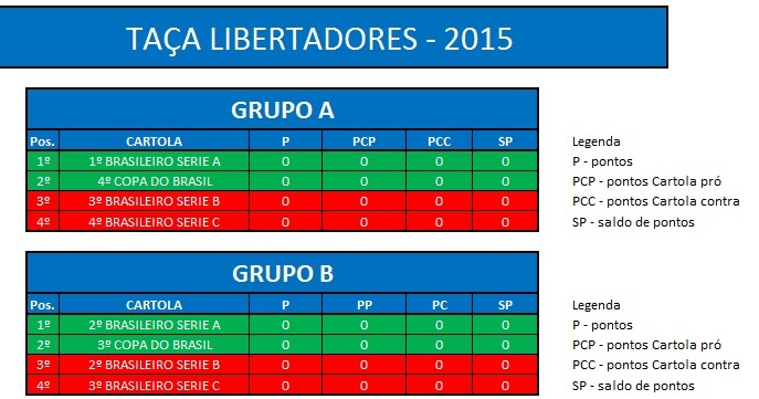 - Classificação: Todos cartolas do Último Campeonato 2014;