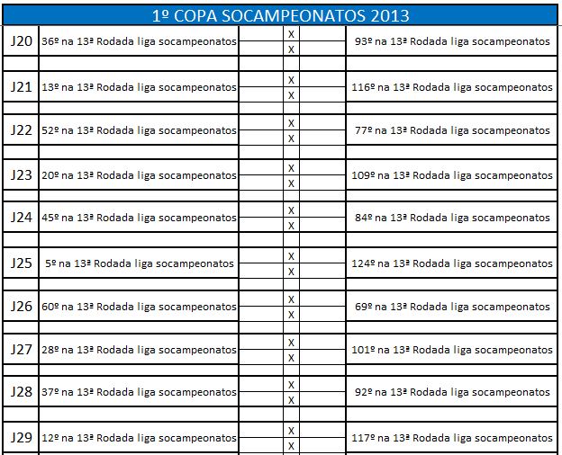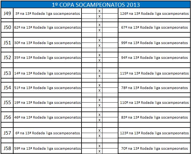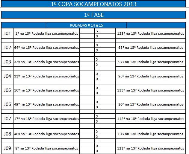 - Classificação: 17º ao 32º melhores do Último Campeonato 2014;