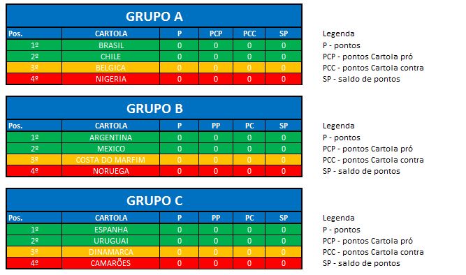 - Times: 16 Cartolas;