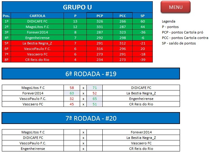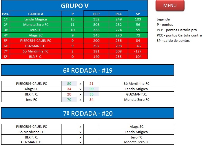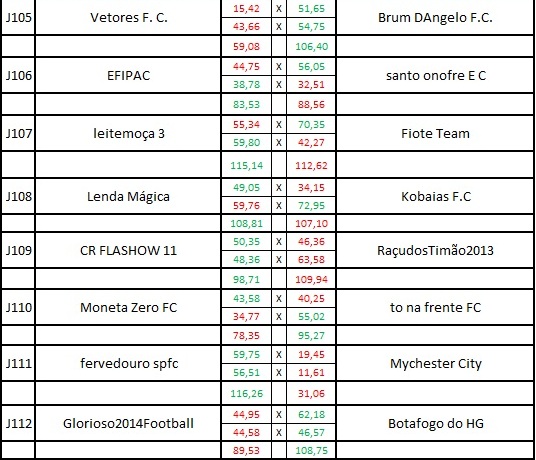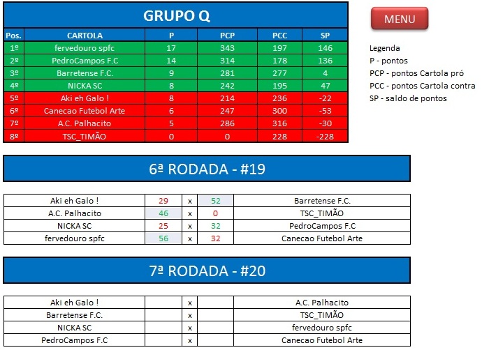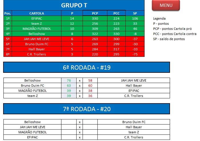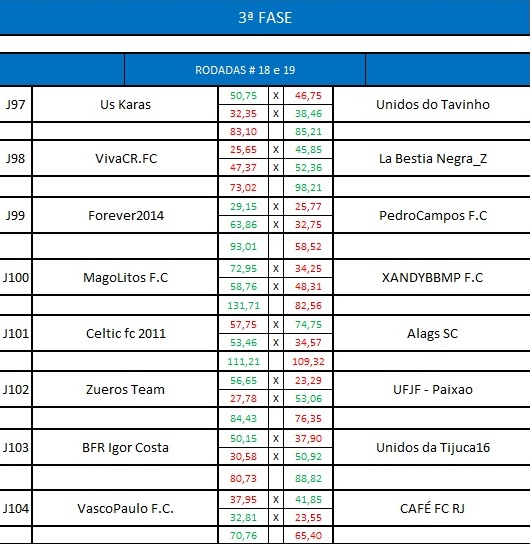 TABELA – TORNEIO – 3ª FASE – 6ª RODADA