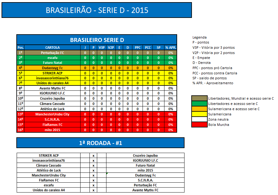 TABELA DO BRASILEIRO SÉRIE D SOCAMPEONATOS!!!