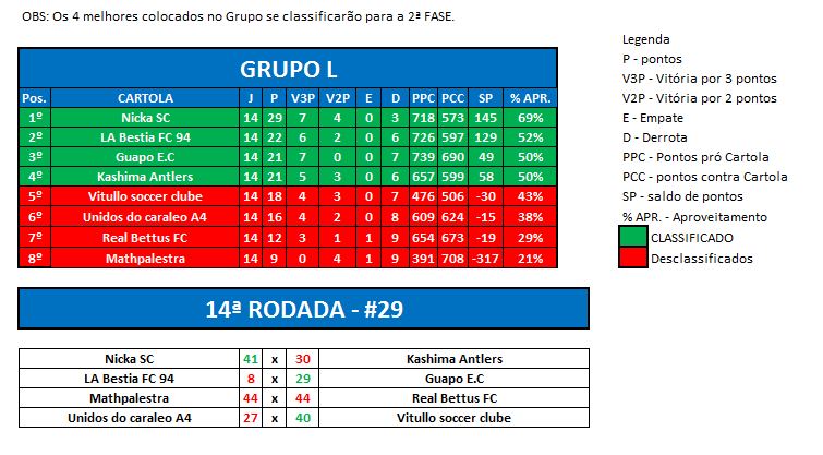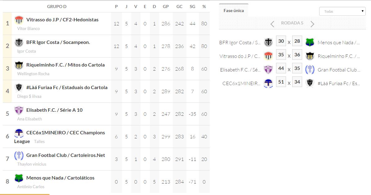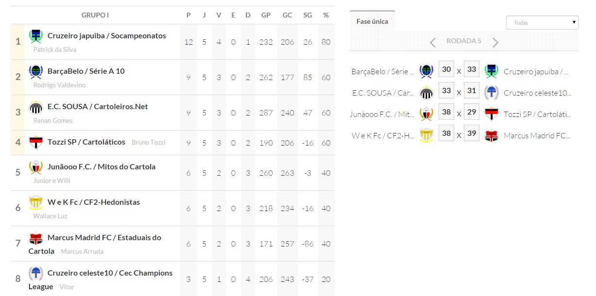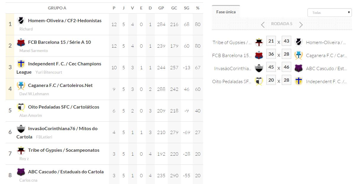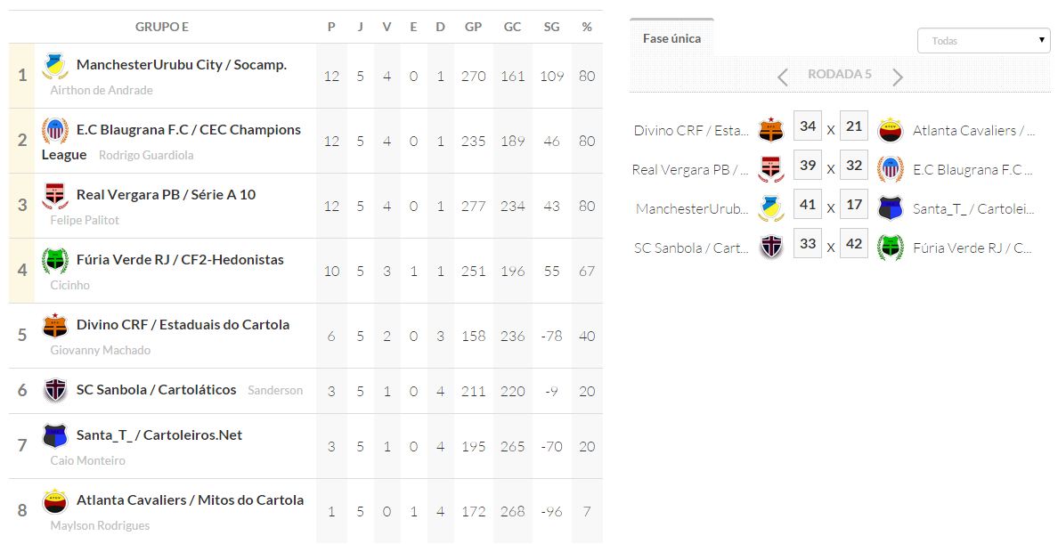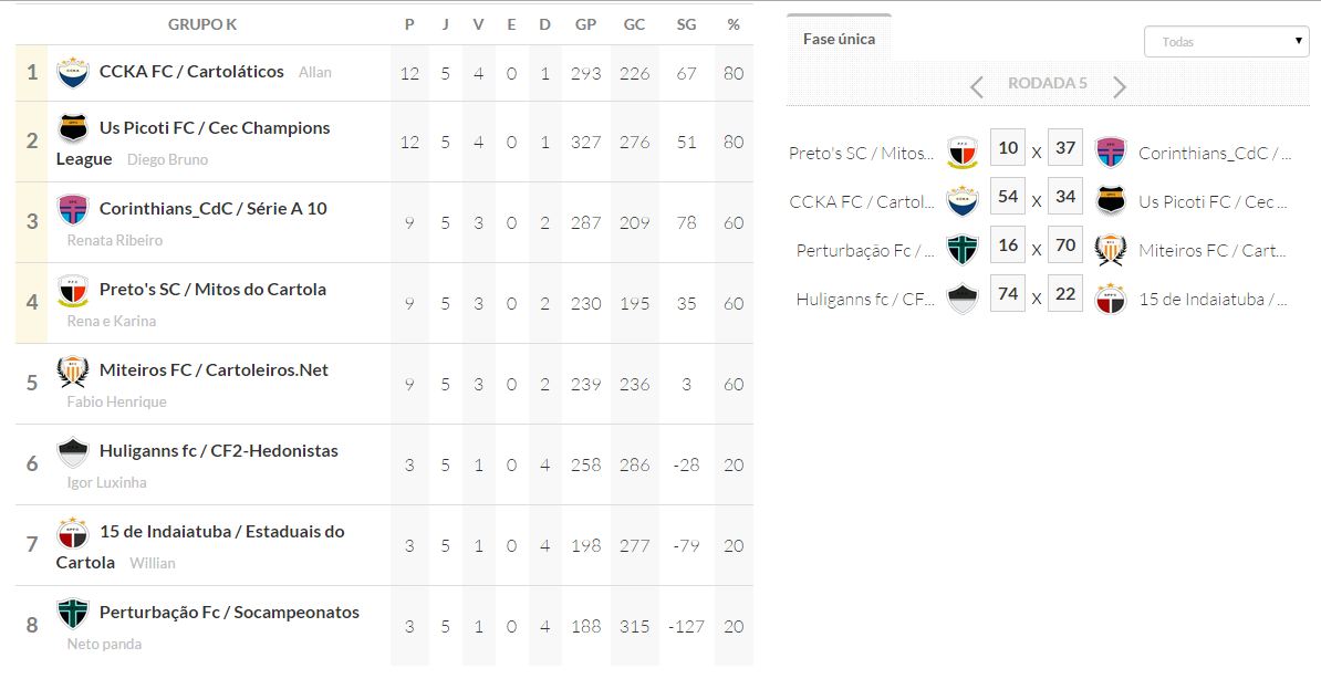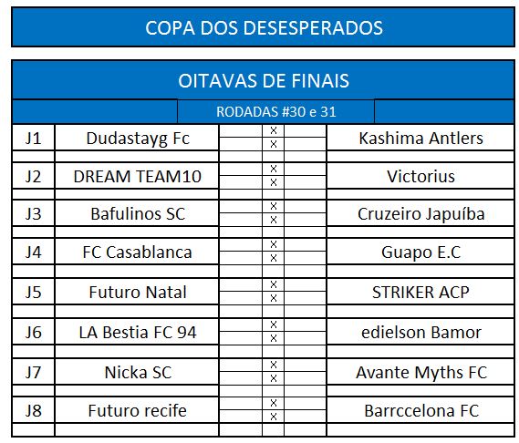 Copa dos desesperados – Classificação – ÚLTIMA RODADA e JOGOS DAS OITAVAS DE FINAIS Publicado em 04/10/2015 por socampeonatos