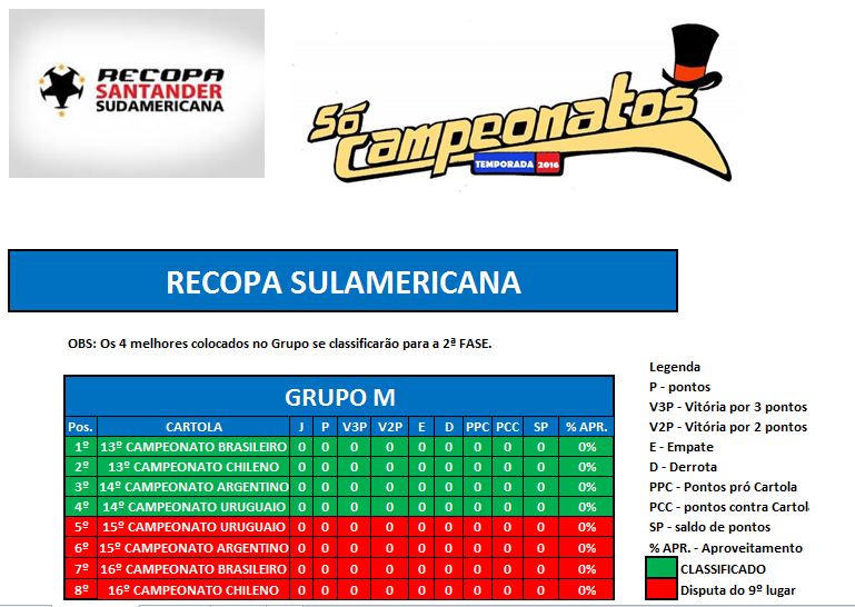 CLASSIFICAÇÃO RECOPA SULAMERICANA 2016