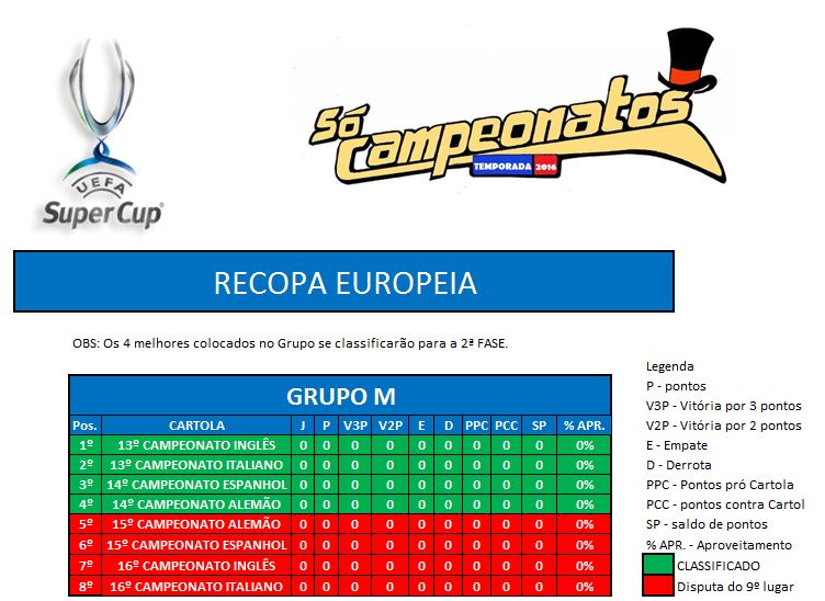 CLASSIFICAÇÃO RECOPA EUROPEIA 2016