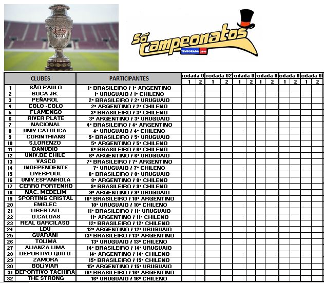 CLASSIFICAÇÃO COPA AMÉRICA DE CLUBES 2016
