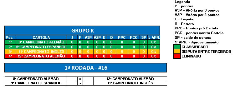 CLASSIFICAÇÃO CHAMPIONS LEAGUE 2016