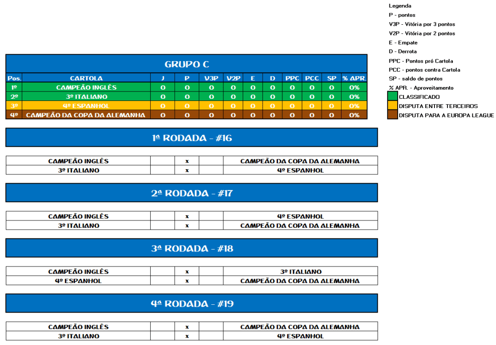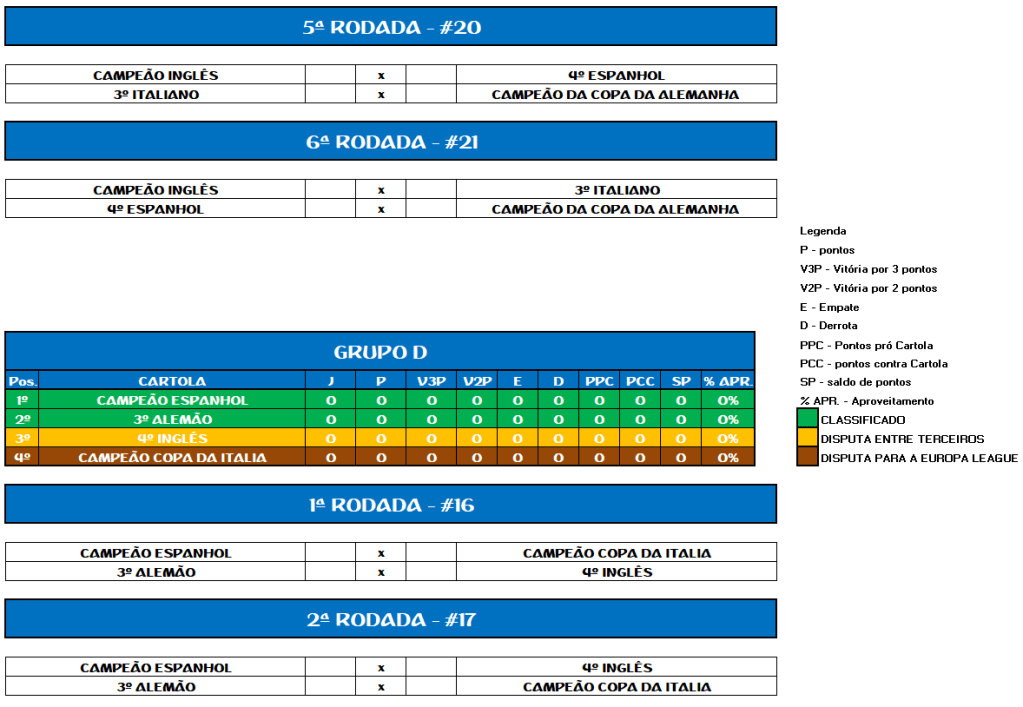 TABELA CHAMPEONS LEAGUE