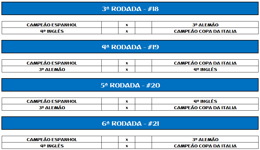 TABELA COPA DA INGLATERRA