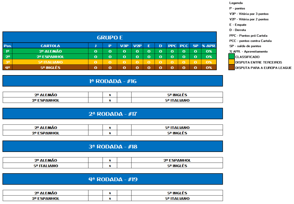 TABELA EUROPA LEAGUE