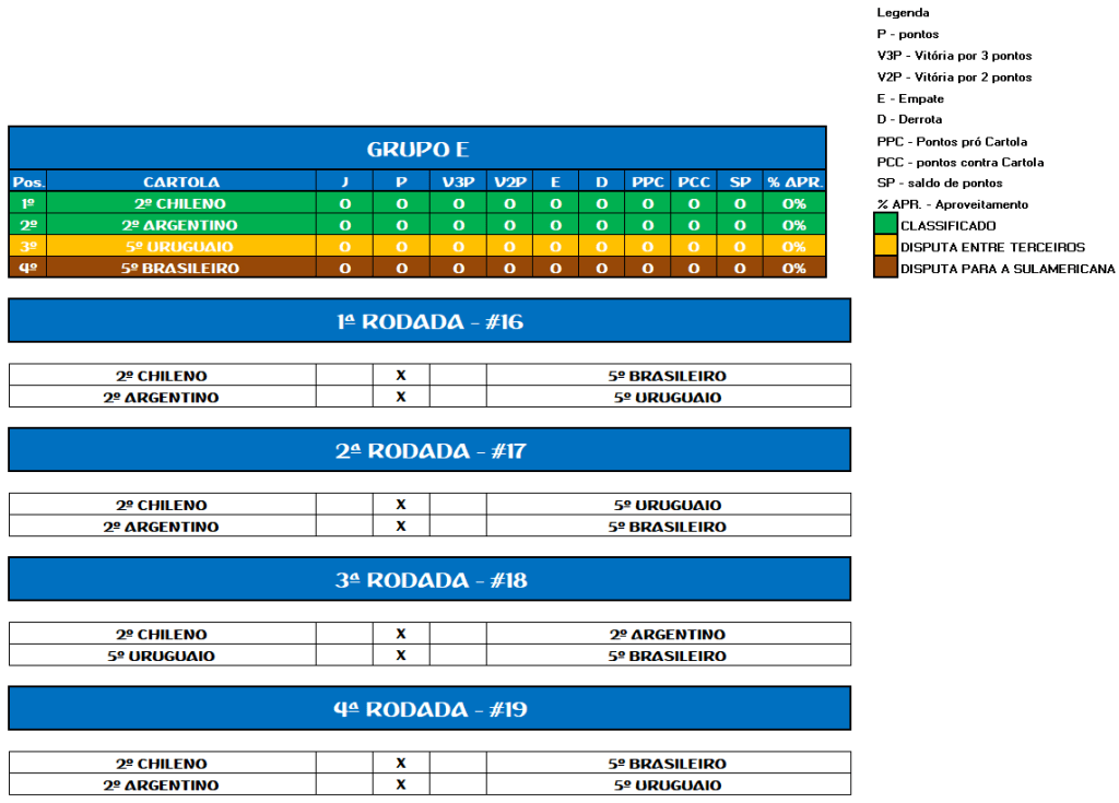TABELA COPA DO URUGUAI
