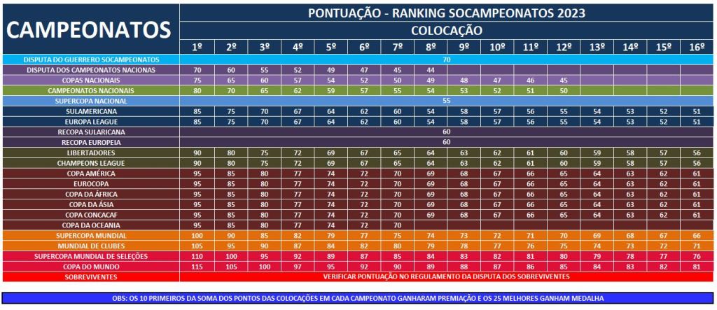 EM CADA CAMPEONATO EXISTE UMA PONTUAÇÃO PARA ATÉ OS 16 MELHORES.