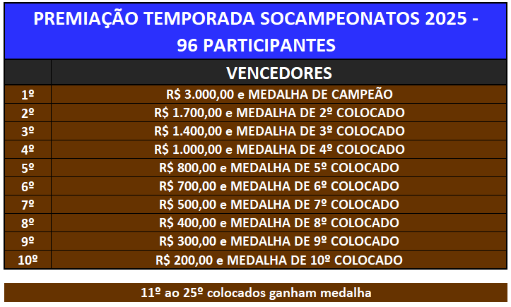 SÓ NA TEMPORADA SOCAMPEONATOS VC TEM AS DISPUTAS ABAIXO: