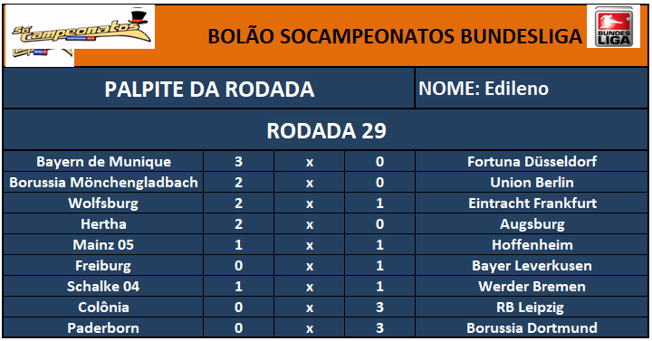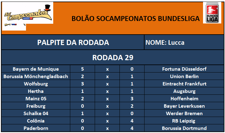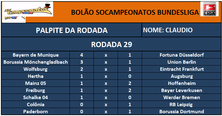 PRÉVIA BOLÃO SOCAMPEONATOS BUNDESLIGA