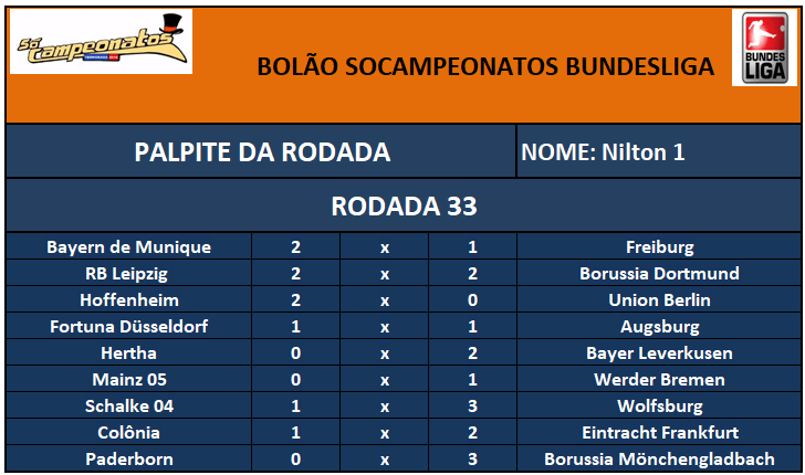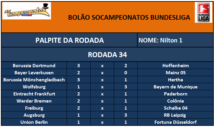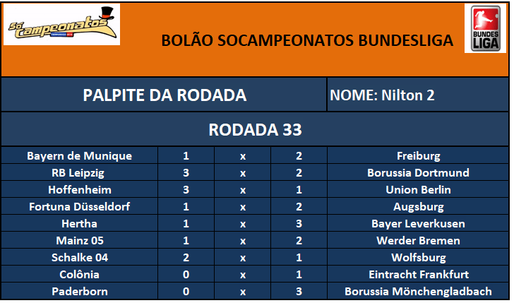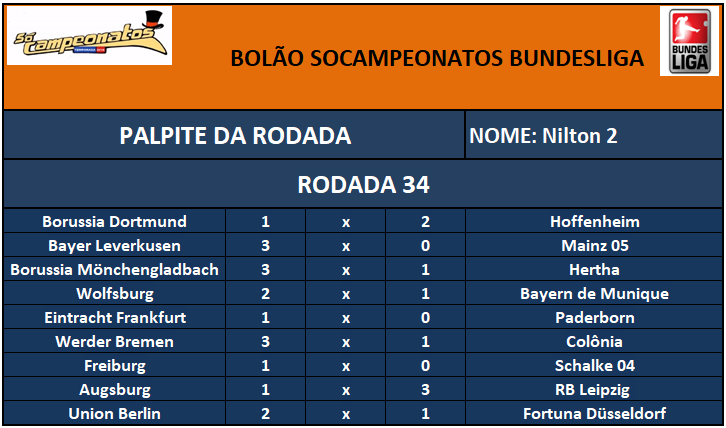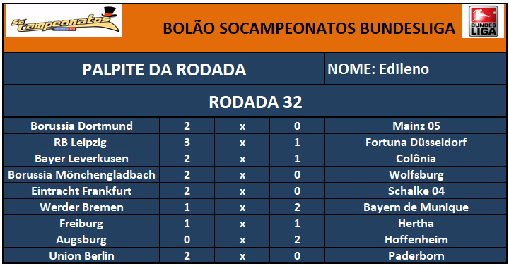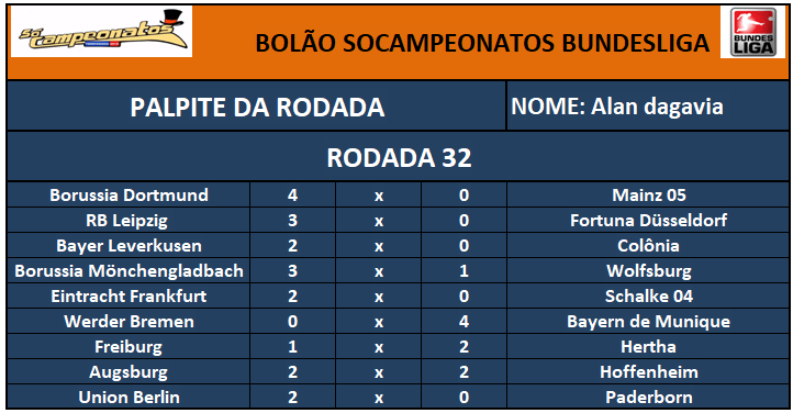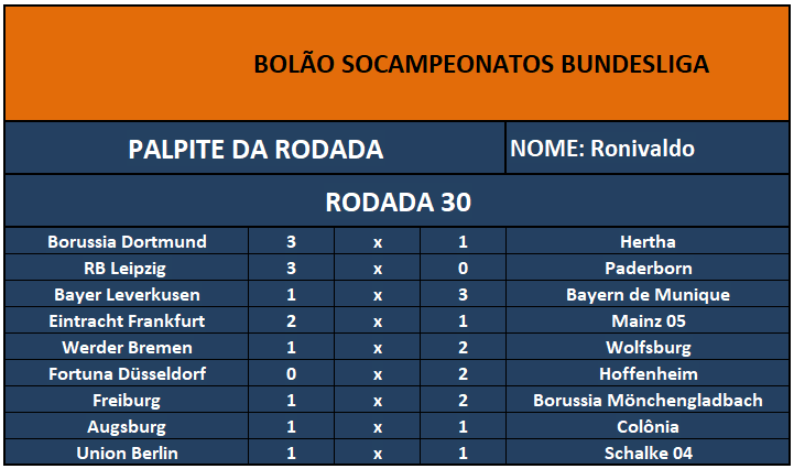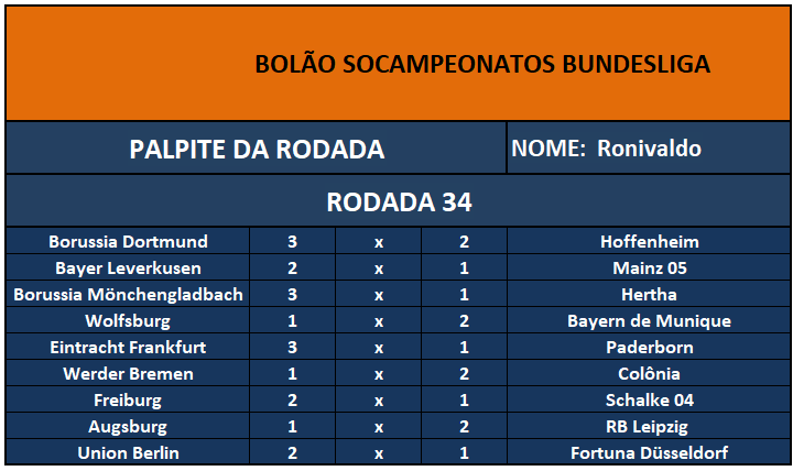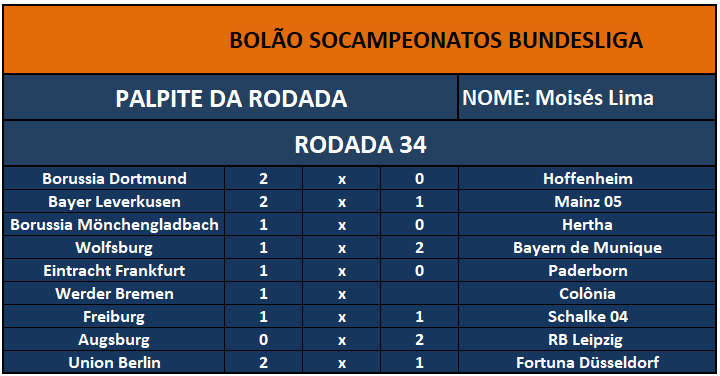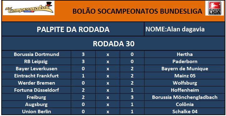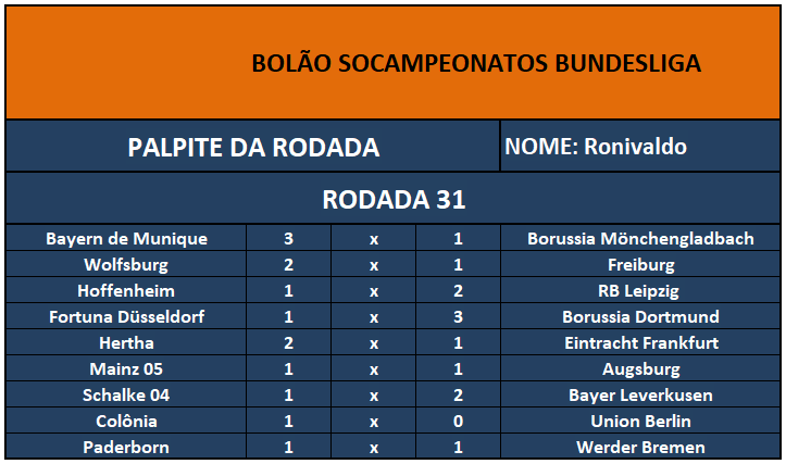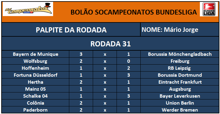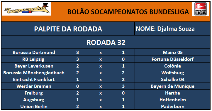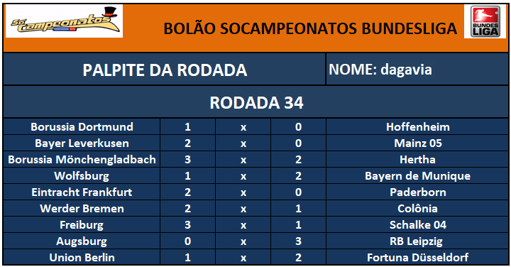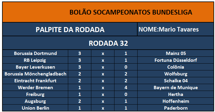 CLASSIFICAÇÃO – BOLÃO SOCAMPEONATOS BUNDESLIGA – ÚLTIMA RODADA
