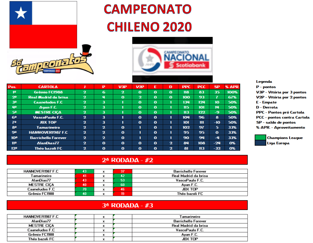 4 – Os times de cada campeonato nacional somarão seus pontos acumulados do cartola.