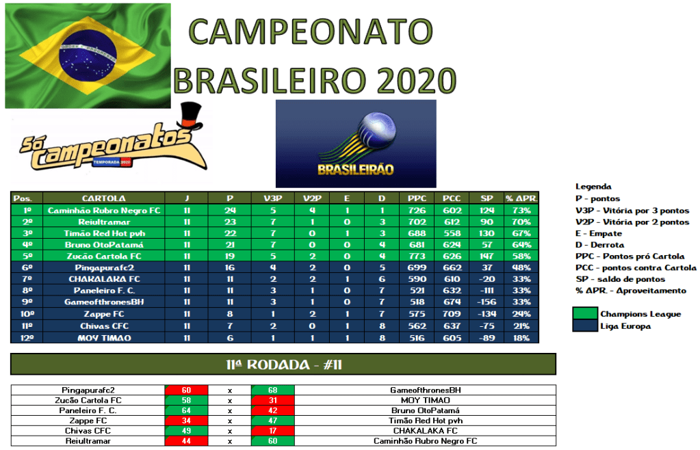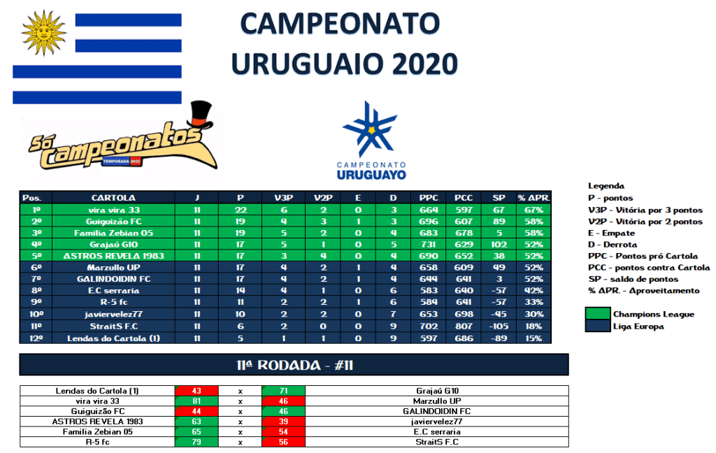 GUERREIRO – RODADA 11 Publicado em 22/09/2020 por socampeonatos O MITO CELESTE 001 FEZ 88,34 PTS MAS NÃO ULTRAPASSOU O GRAJAÚ G10 COM 129,03 PTS QUE PERMANECE COMO GUERREIRO ATÉ O MOMENTO.