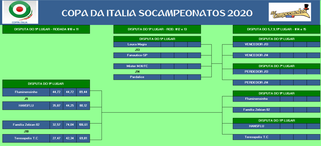 COPA DA ITALIA – QUARTAS DE FINAIS E DISPUTA DO 9º LUGAR – VOLTA Publicado em 22/09/2020 por socampeonatos