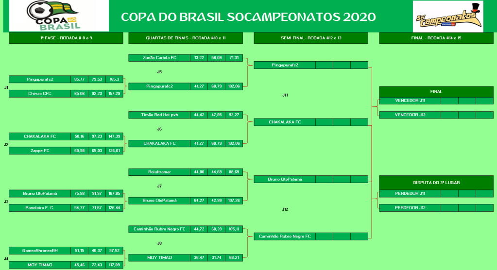 COPA DO BRASIL – QUARTAS DE FINAIS E DISPUTA DO 9º LUGAR – VOLTA Publicado em 22/09/2020 por socampeonatos