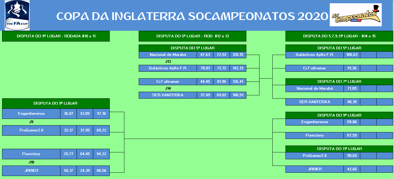 COPA DA INGLATERRA – DISPUTA 3º,5º,7º,9º,11º,13º,15º – VOLTA Publicado em 13/10/2020 por socampeonatos