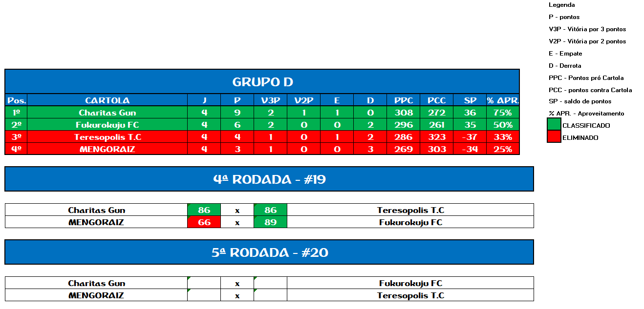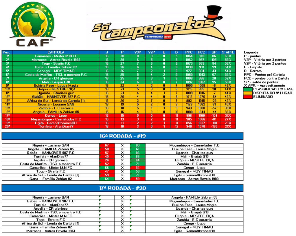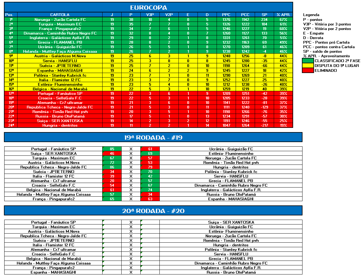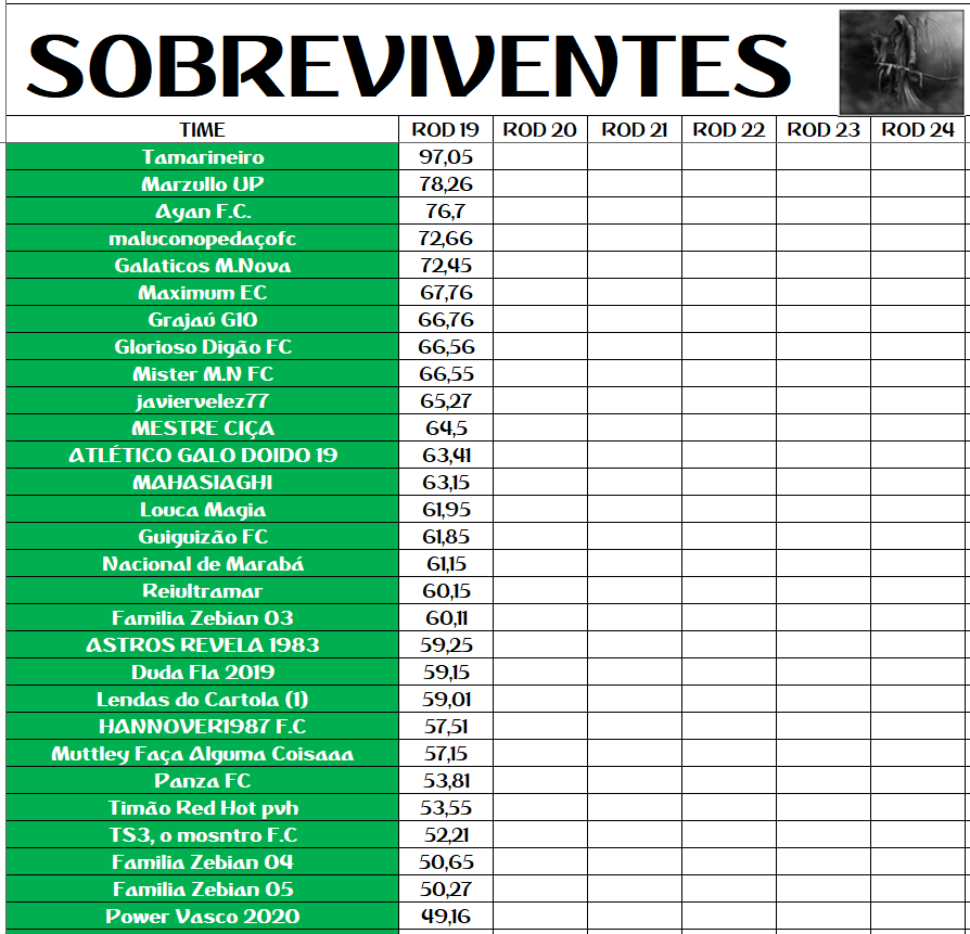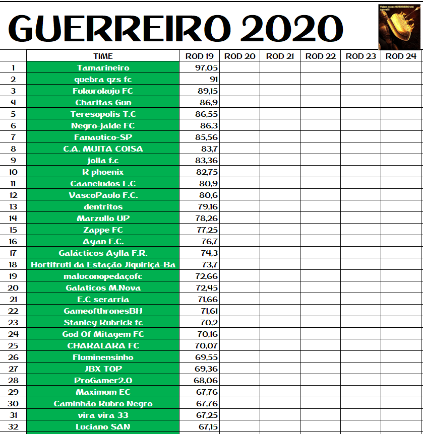 GUERREIRO – RODADA 19 Publicado em 03/11/2020 por socampeonatos O MITO TAMANIEIRO FEZ 97,05 PTS MAS NÃO ULTRAPASSOU O GRAJAÚ G10 COM 129,03 PTS QUE PERMANECE COMO GUERREIRO ATÉ O MOMENTO.