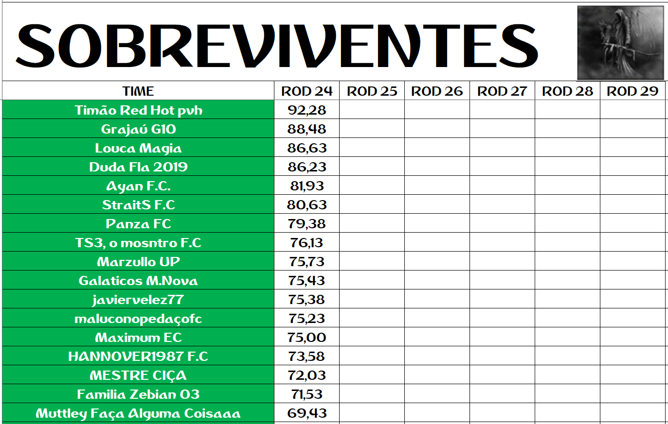 SOBREVIVENTES RODADA 24 Publicado em 08/12/2020 por socampeonatos Compartilhe isso: Clique para compartilhar no X(abre em nova janela) 18+ Clique para compartilhar no Facebook(abre em nova janela) Facebook Clique para compartilhar no WhatsApp(abre em nova janela) WhatsApp Curtir Carregando... Relacionado