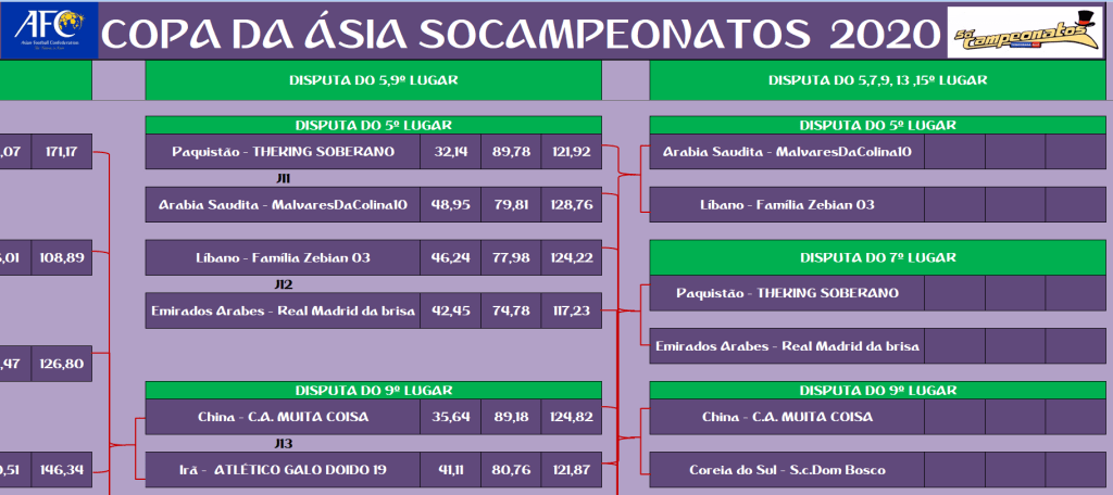 COPA DA ÁSIA – SEMI FINAL, DISPUTA DO 5º,9º,13º LUGAR – VOLTA Publicado em 28/12/2020 por socampeonatos Compartilhe isso: Clique para compartilhar no X(abre em nova janela) 18+ Clique para compartilhar no Facebook(abre em nova janela) Facebook Clique para compartilhar no WhatsApp(abre em nova janela) WhatsApp Curtir Carregando... Relacionado