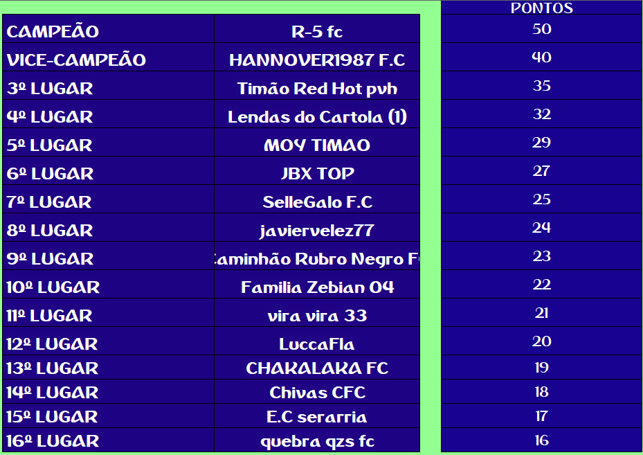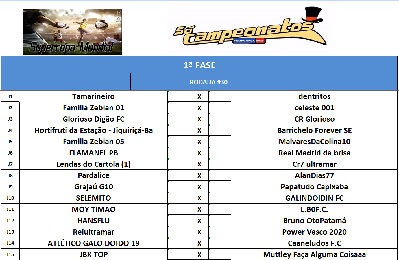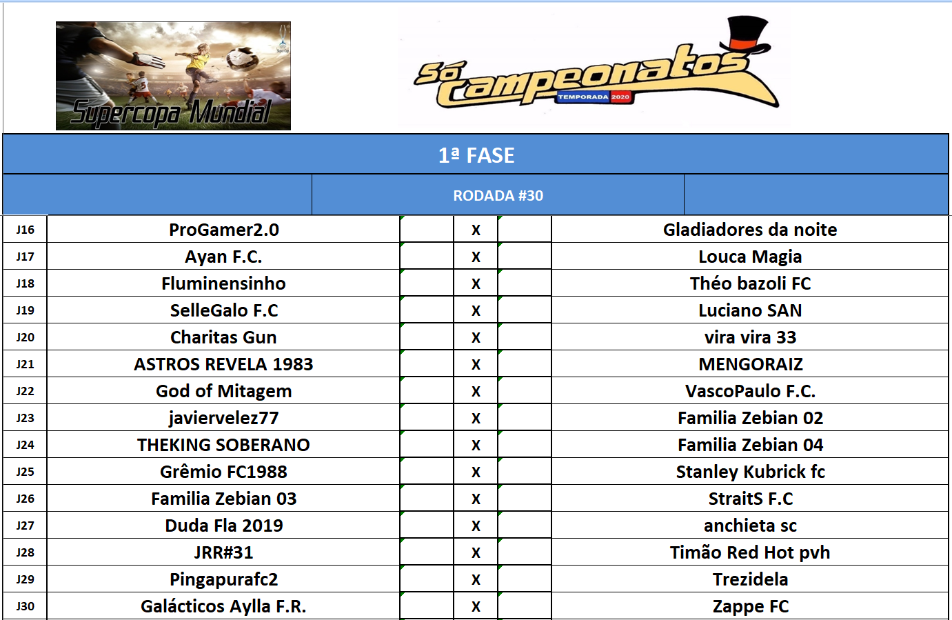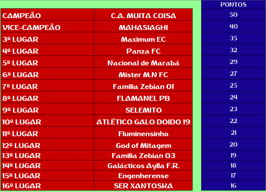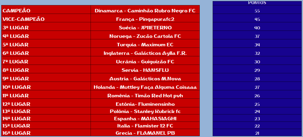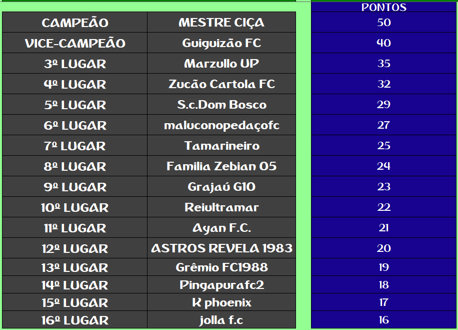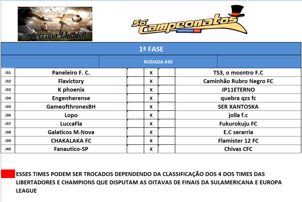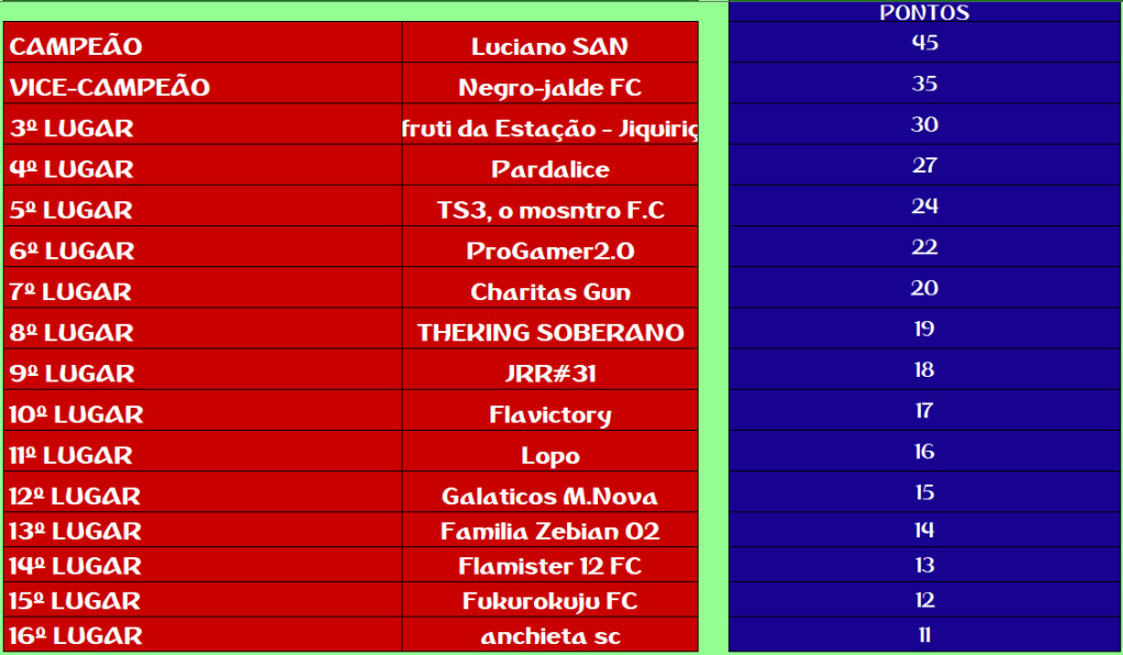 CHAMPIONS LEAGUE – FINAL, DISPUTA DO 3º,5º,7º,9º,11º,13º,15º LUGAR – VOLTA Publicado em 12/01/2021 por socampeonatos