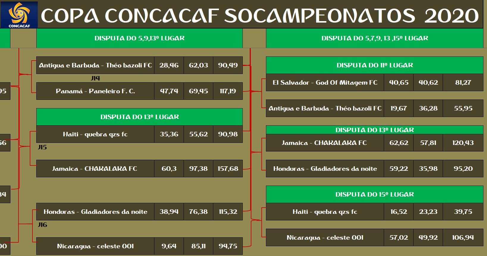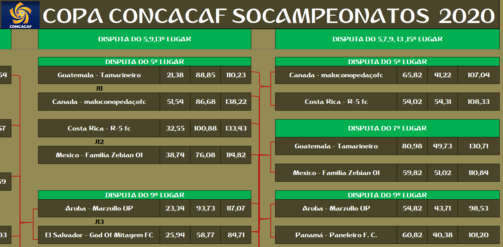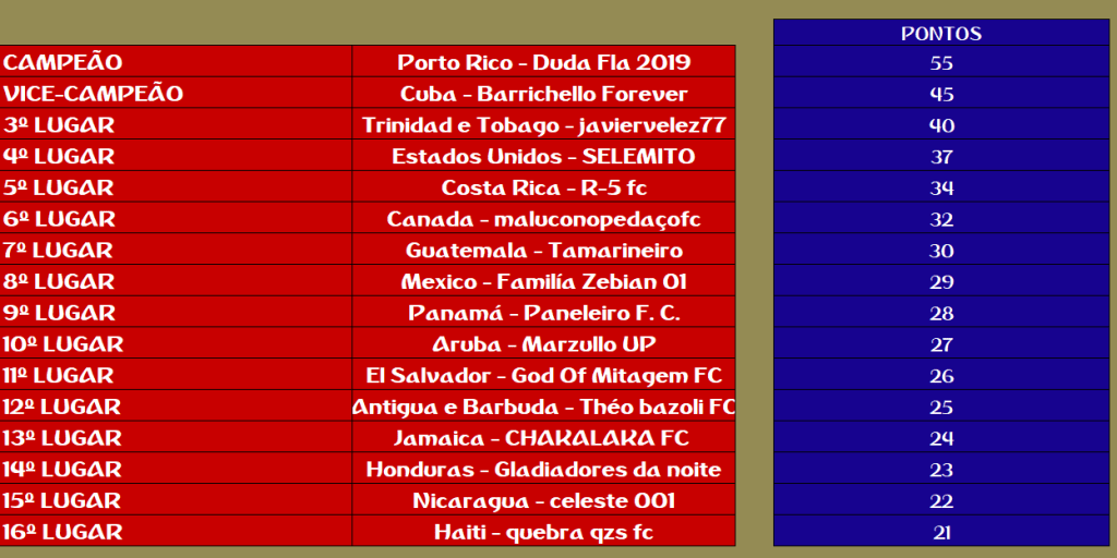 COPA CONCACAF – FINAL, DISPUTA DO 3º,5º,7º,9º,11º,13º,15º LUGAR – VOLTA Publicado em 12/01/2021 por socampeonatos