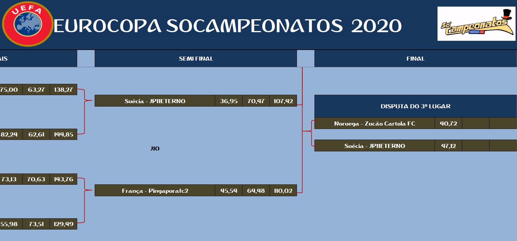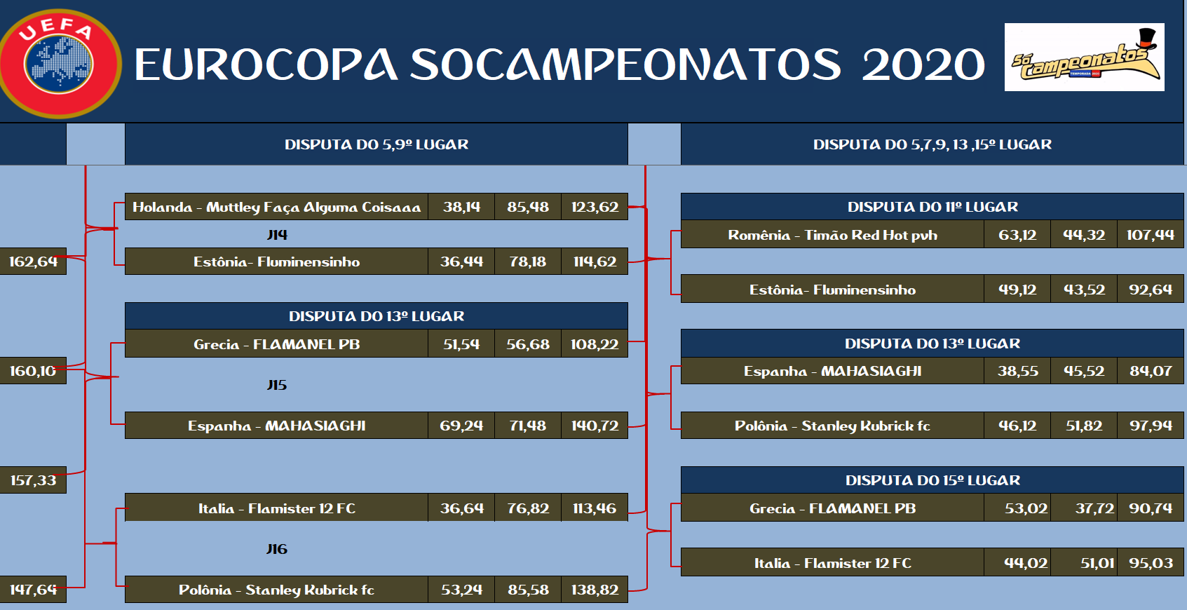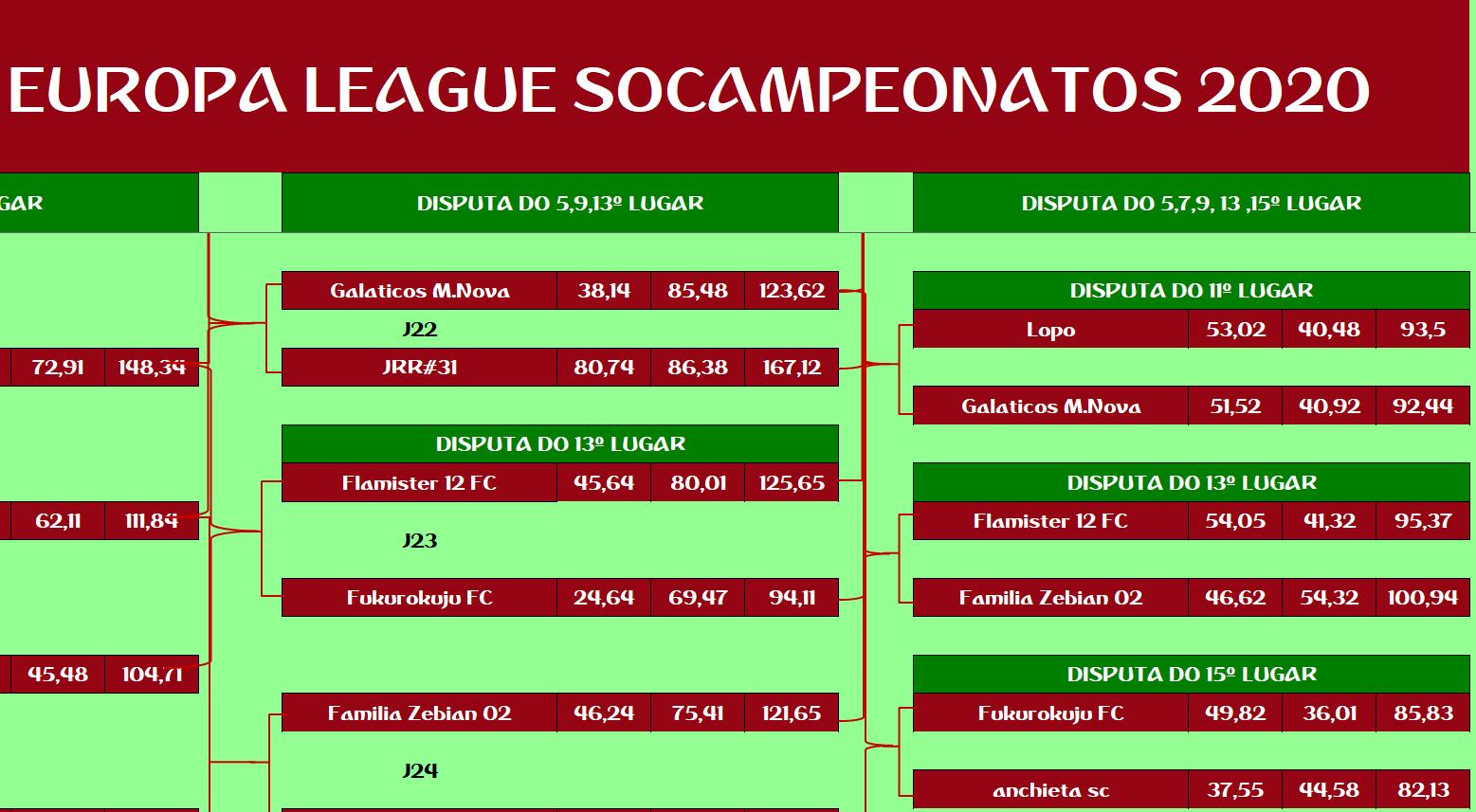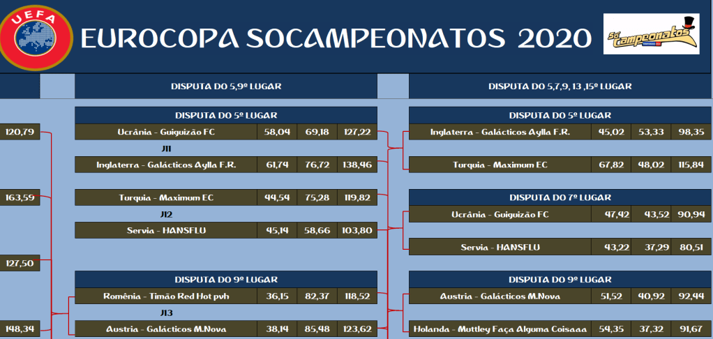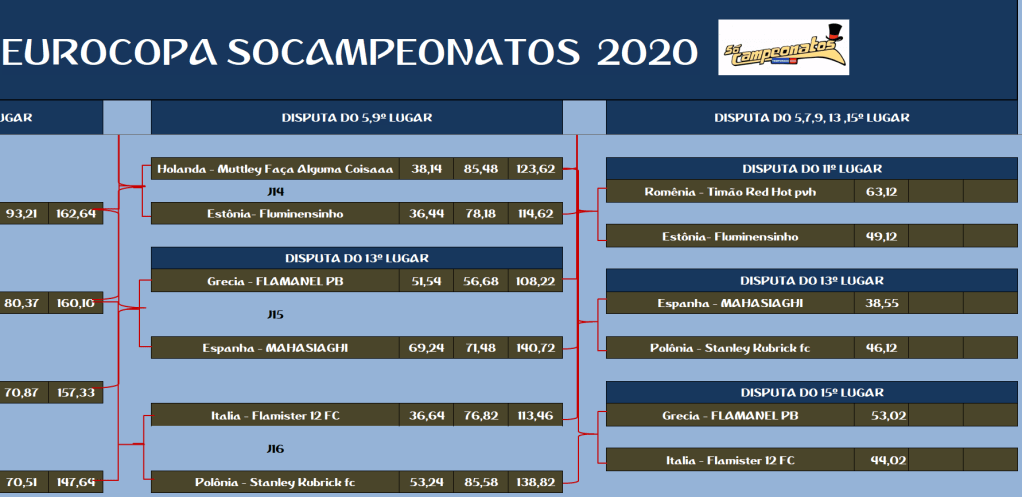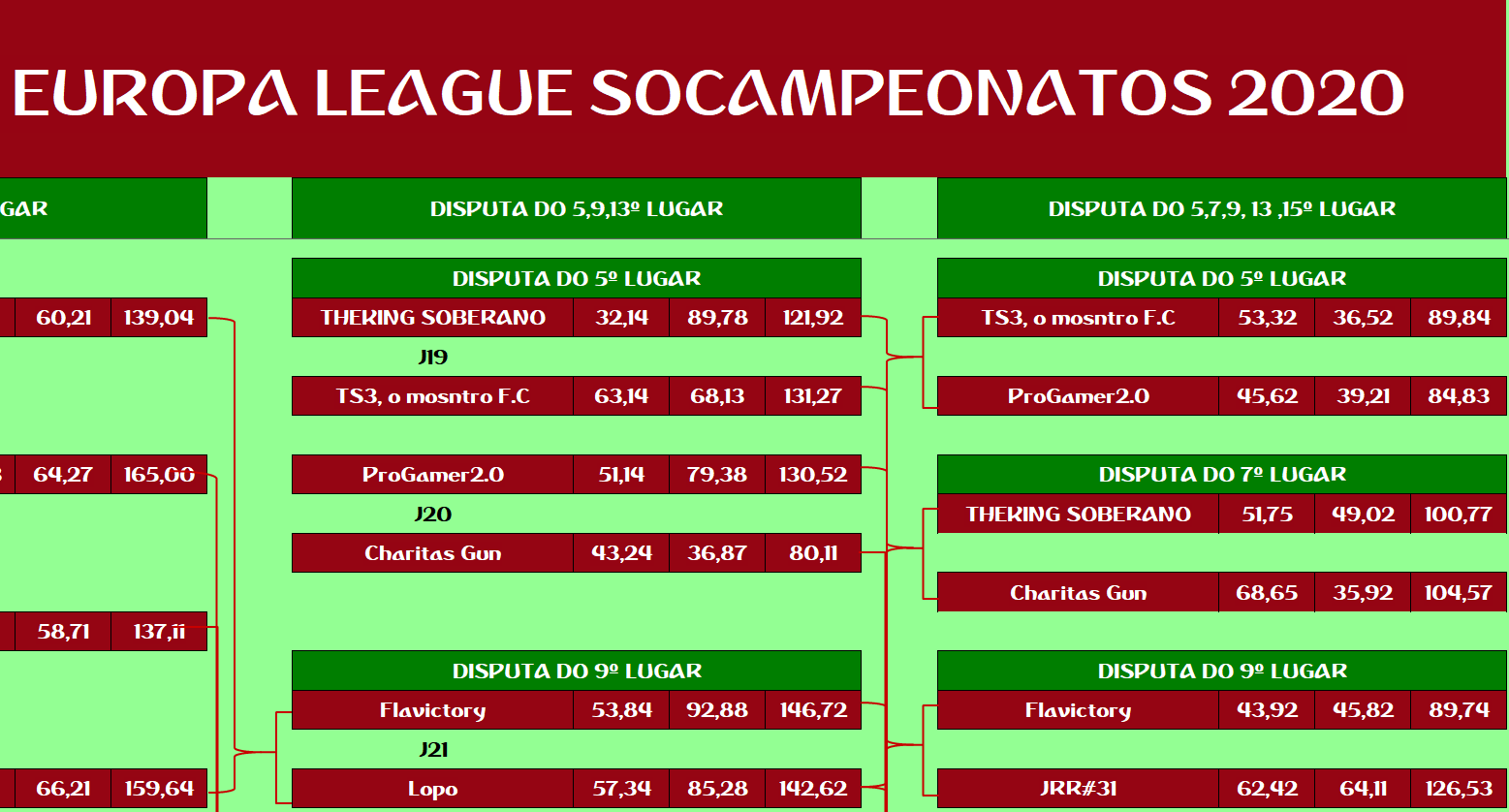 EUROPA LEAGUE – FINAL, DISPUTA DO 3º,5º,7º,9º,11º,13º,15º LUGAR – VOLTA Publicado em 12/01/2021 por socampeonatos