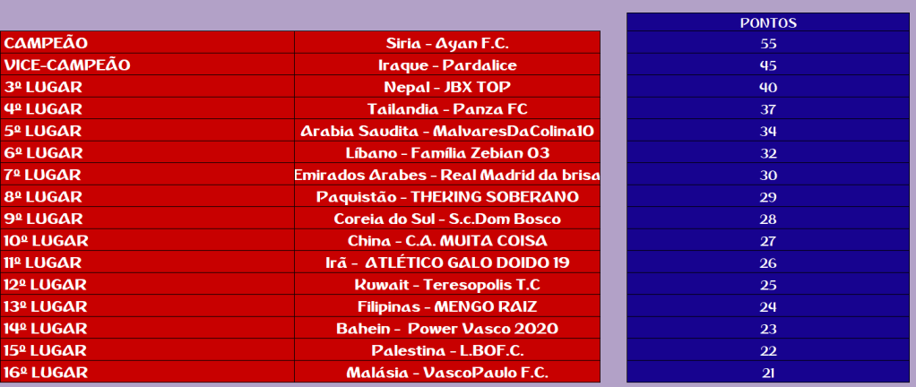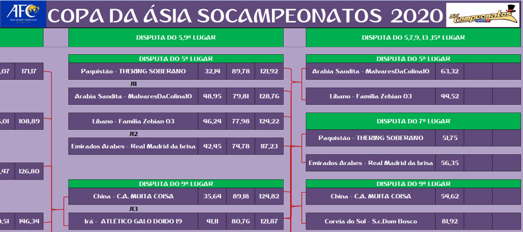 COPA DA ÁSIA – FINAL, DISPUTA DO 3º,5º,7º,9º,11º,13º,15º LUGAR – VOLTA Publicado em 12/01/2021 por socampeonatos