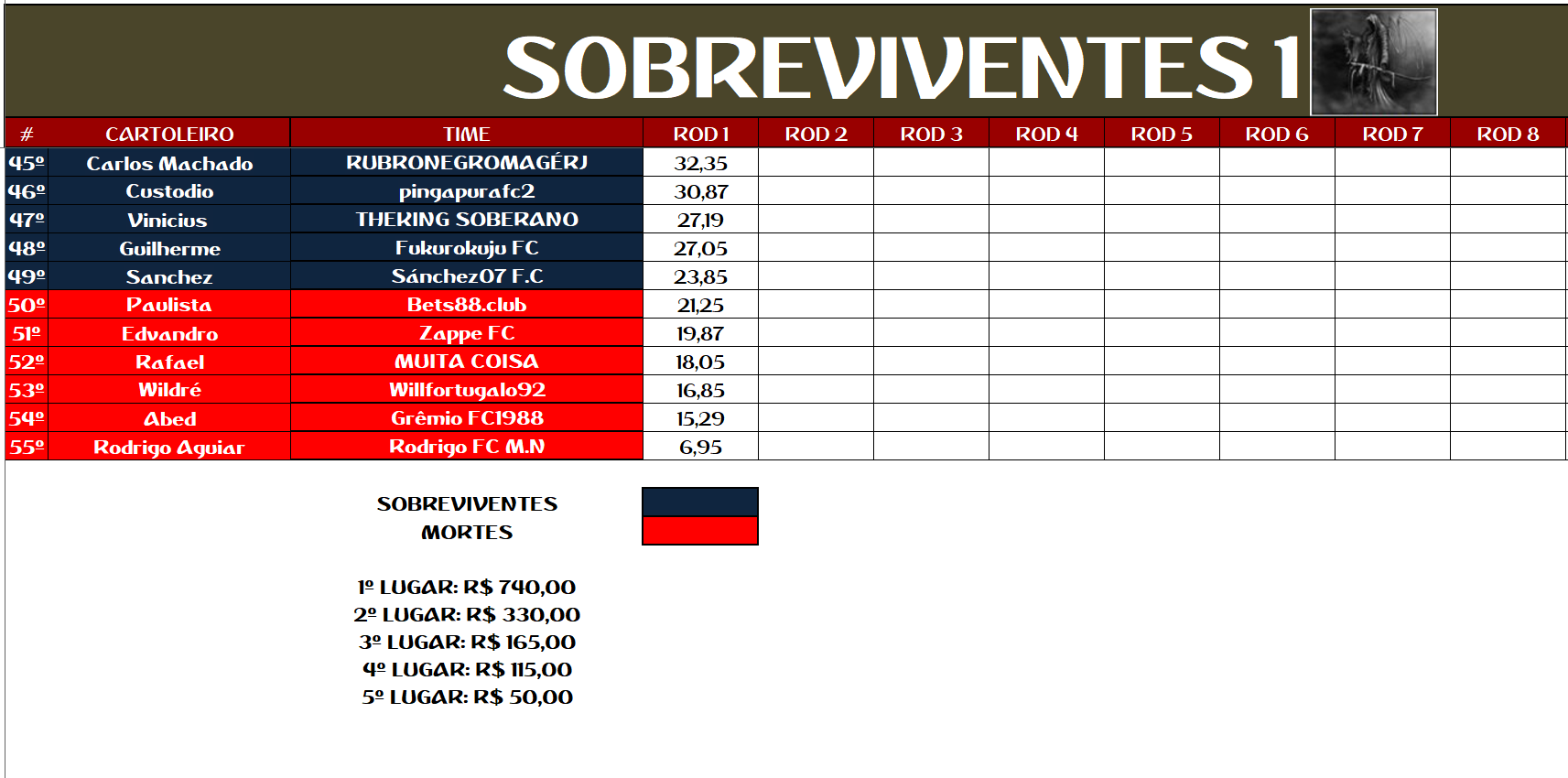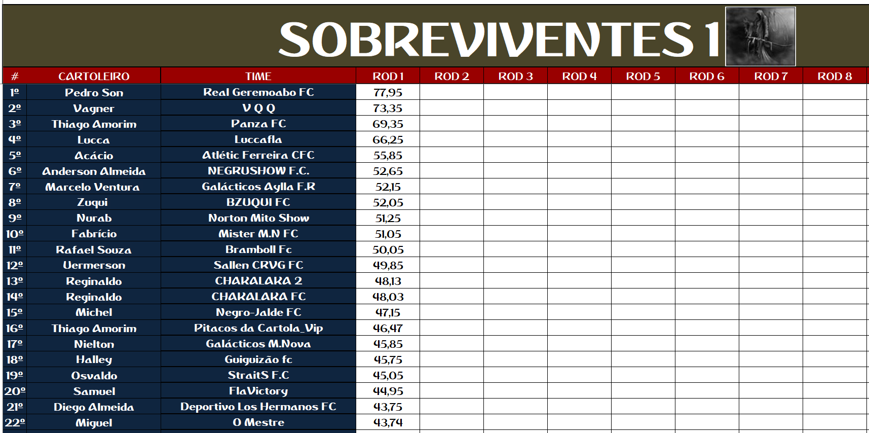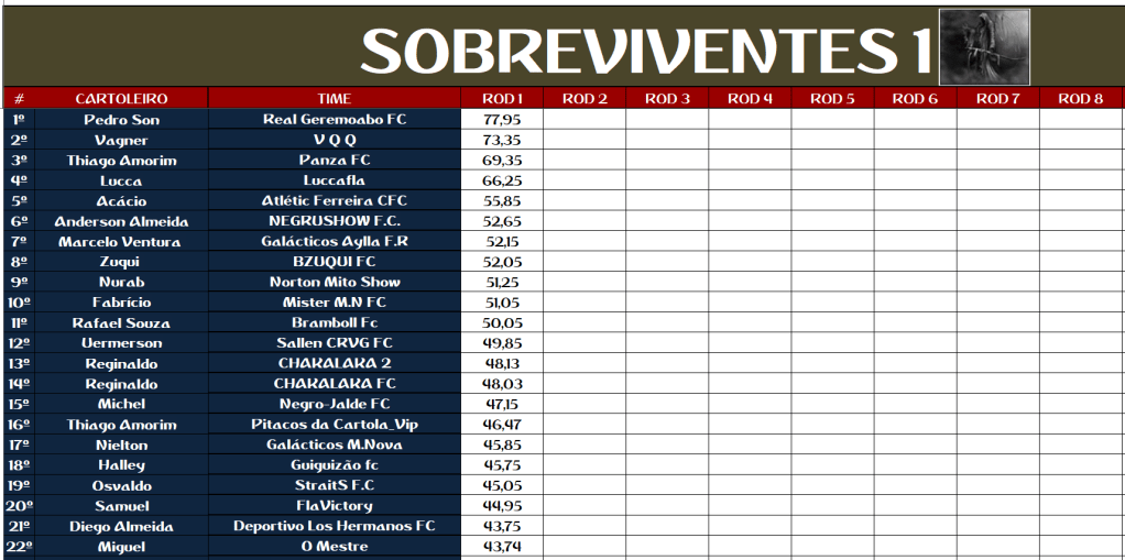 2 – O cartola que mudar o nome do time durante o campeonato será eliminado;