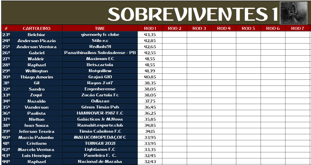4 – Cada campeonato nacional somará a pontuação do cartola de todos seus times durante as 11 primeiras rodadas;