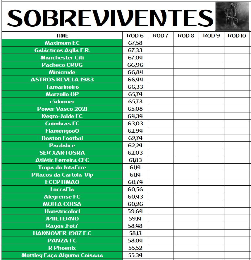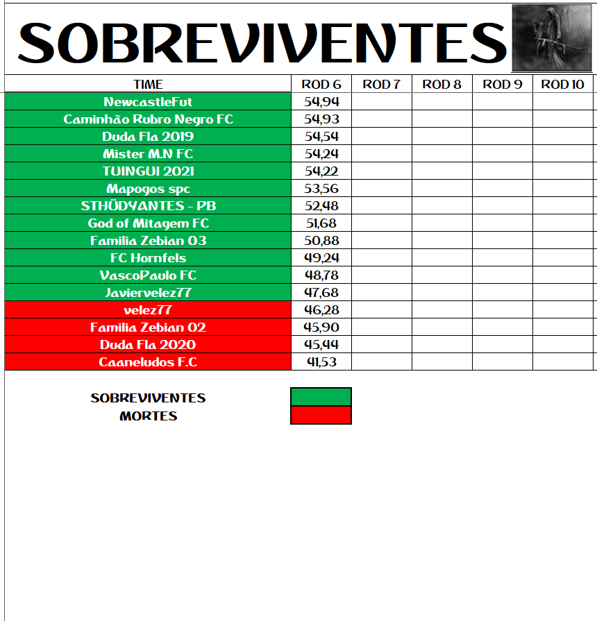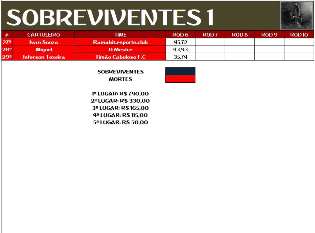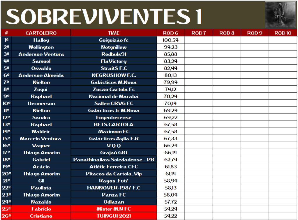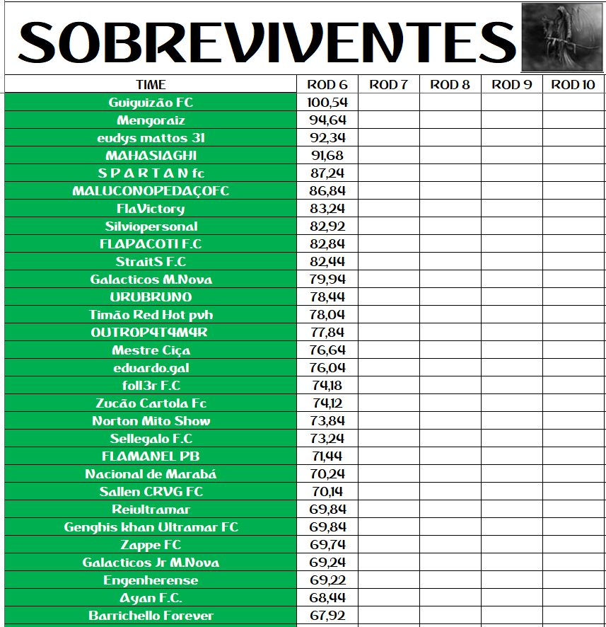 SOBREVIVENTES DA TEMPORADA – RODADA 6