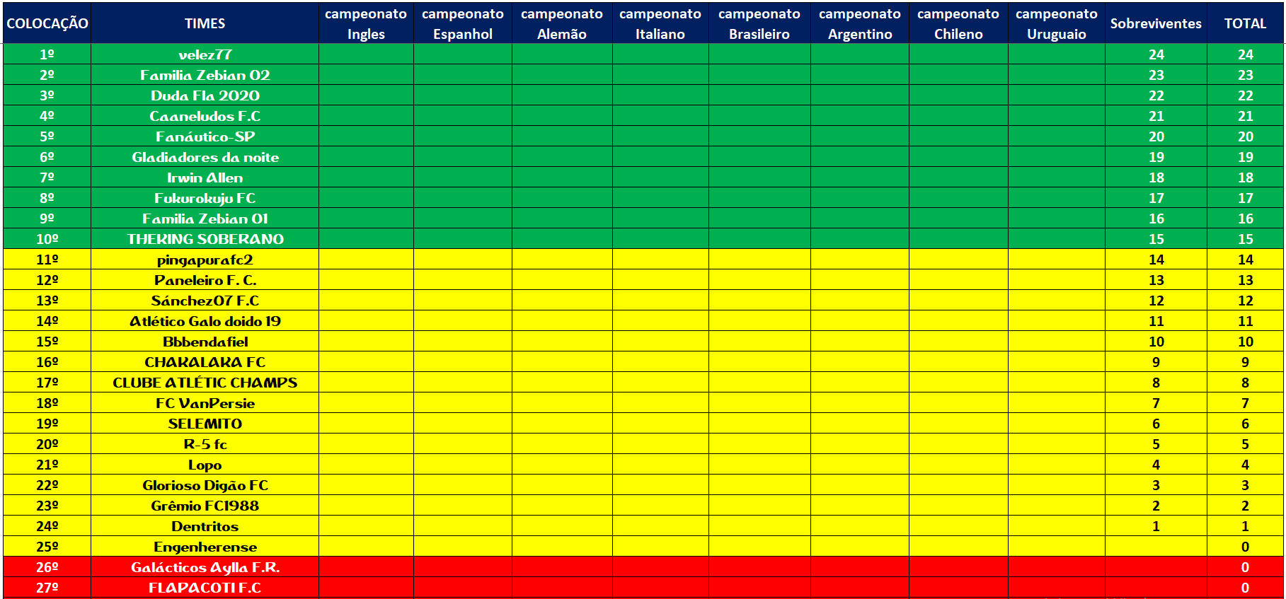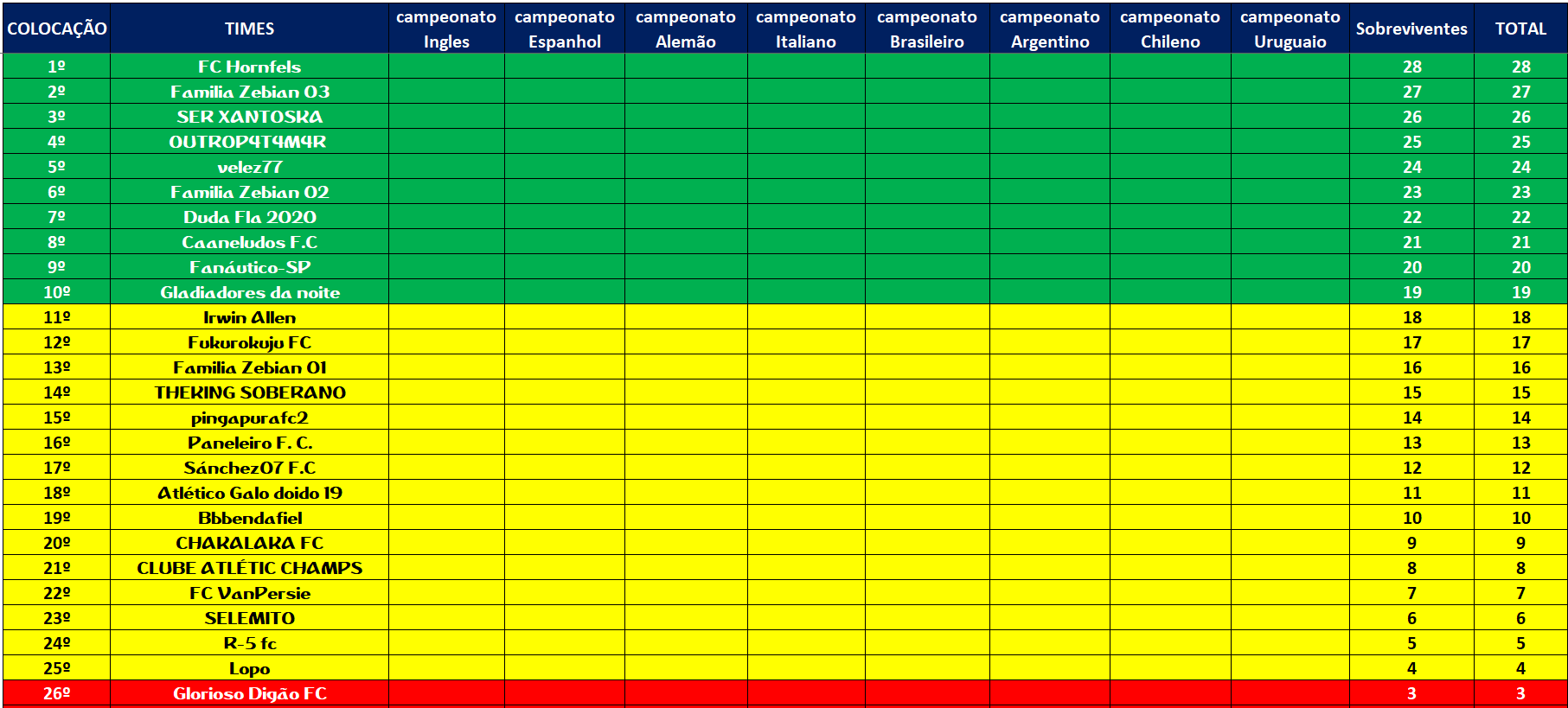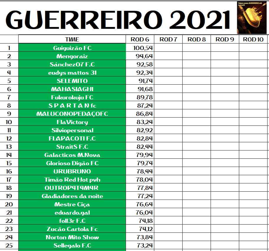 SOBREVIVENTES DA TEMPORADA – RODADA 6