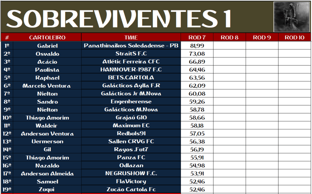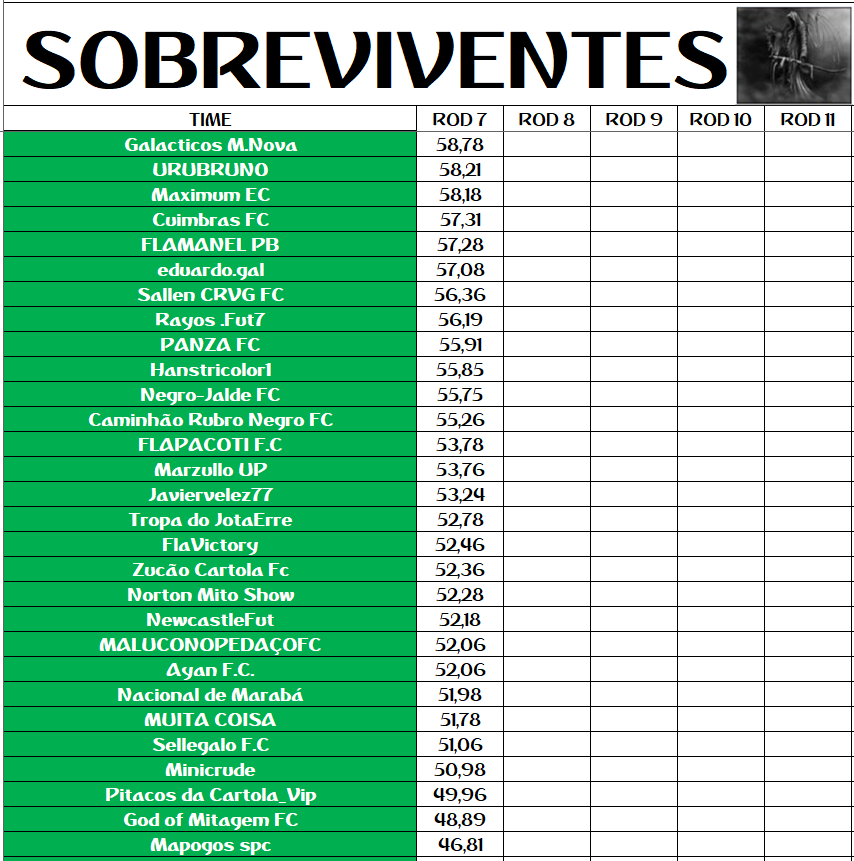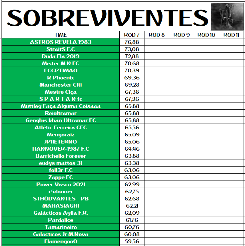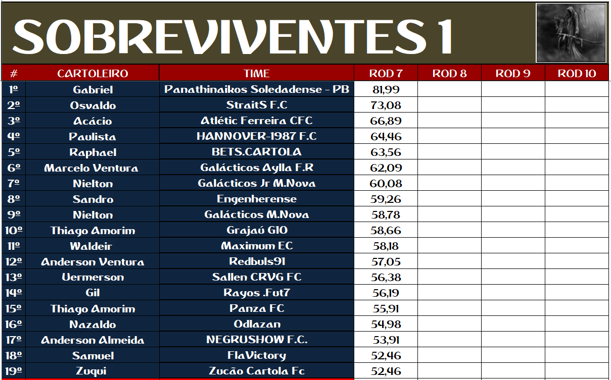 SOBREVIVENTES DA TEMPORADA – RODADA 7