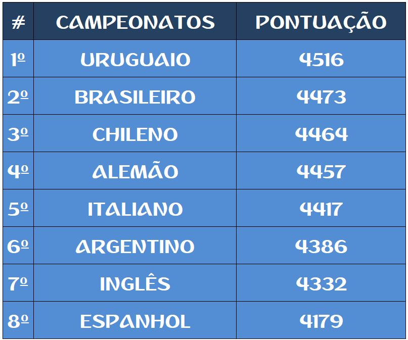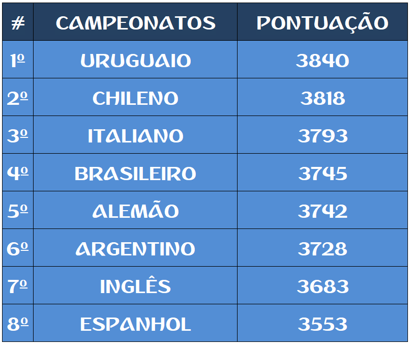 TABELA – O MAIOR CAMPEONATOS DA HISTÓRIA