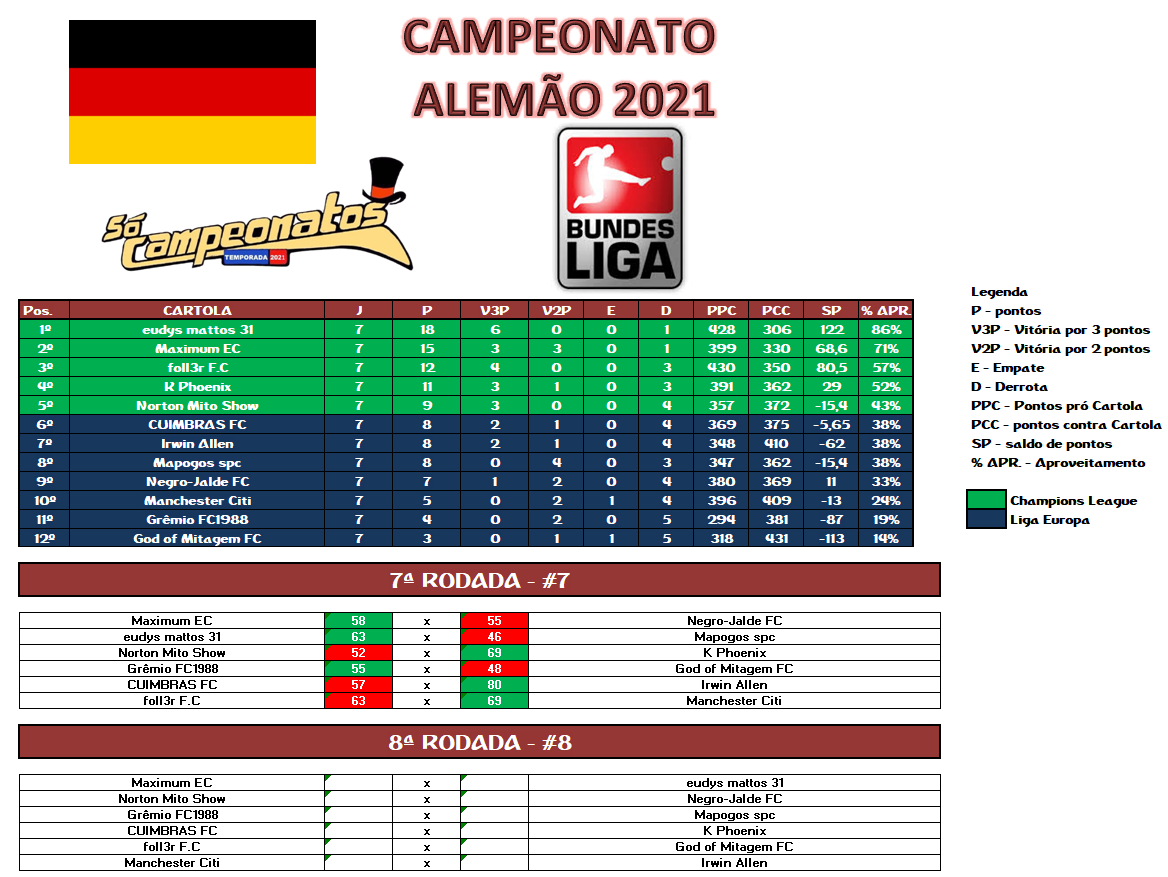 CLASSIFICAÇÃO CAMPEONATO ALEMÃO