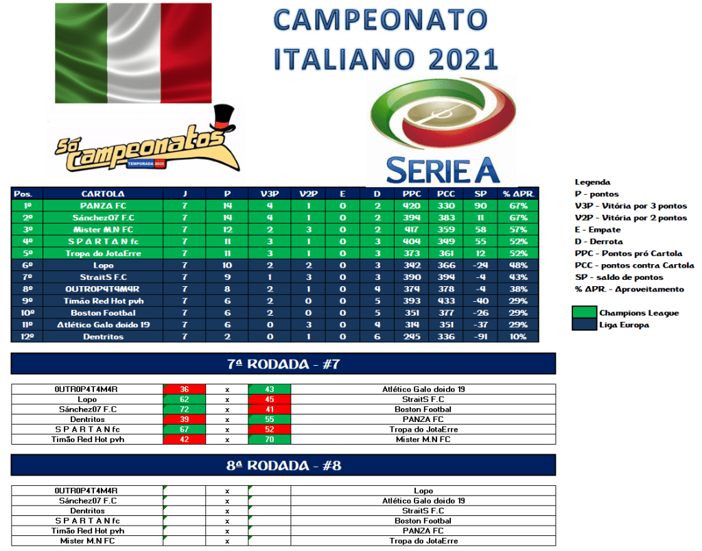 TABELA CAMPEONATO ITALIANO