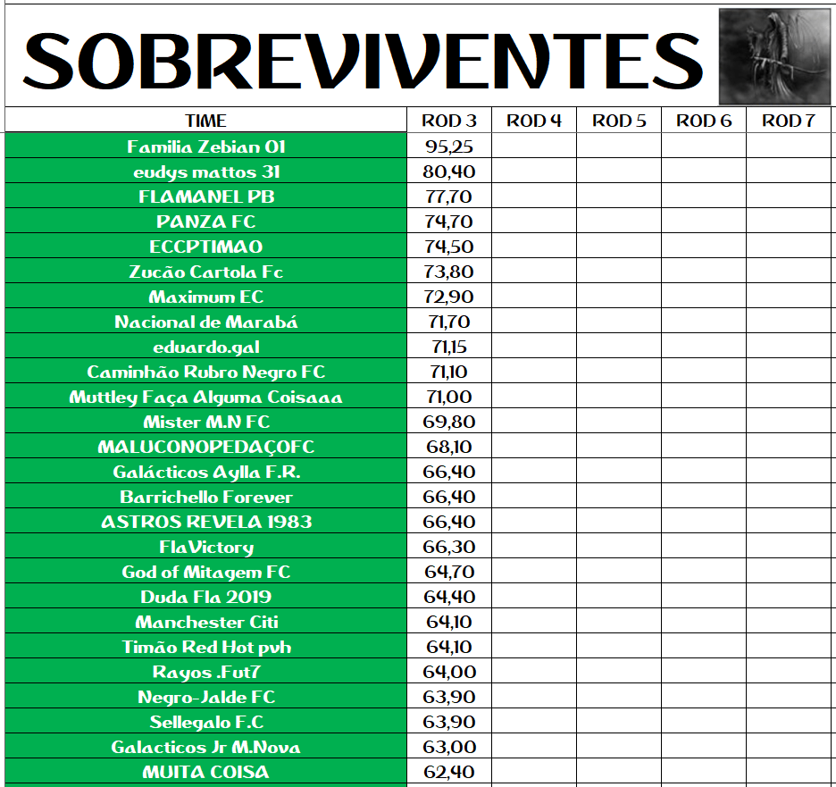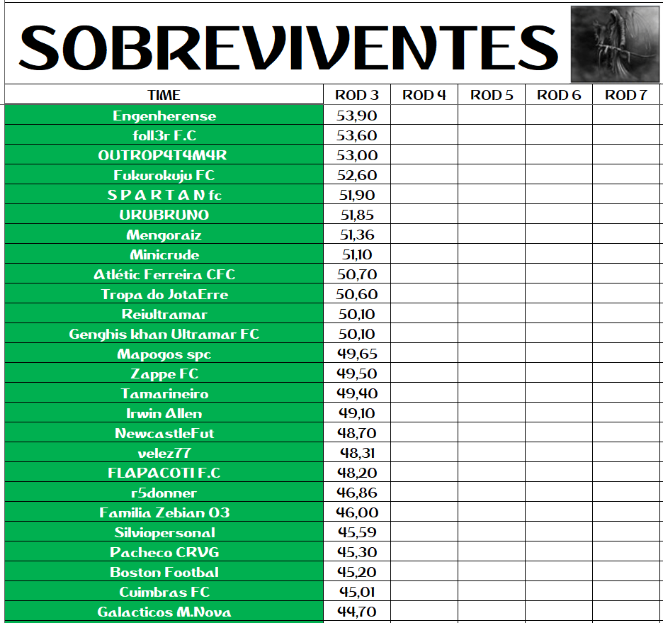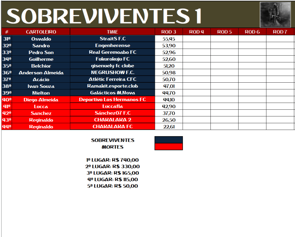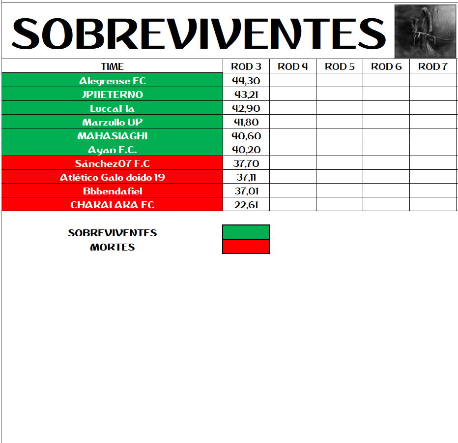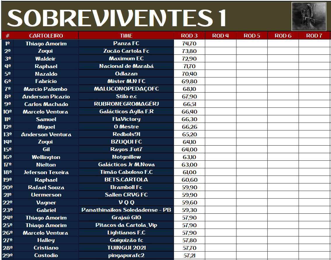 SOBREVIVENTES DA TEMPORADA – RODADA 3
