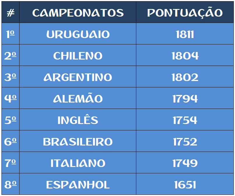 TABELA – O MAIOR CAMPEONATOS DA HISTÓRIA