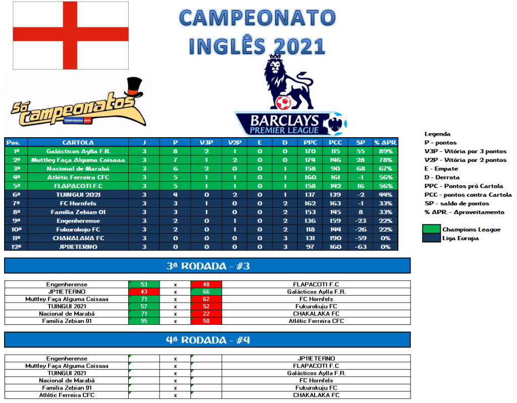 CLASSIFICAÇÃO CAMPEONATO INGLÊS