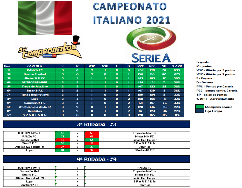 CLASSIFICAÇÃO CAMPEONATO ITALIANO