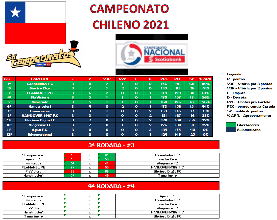CLASSIFICAÇÃO CAMPEONATO CHILENO