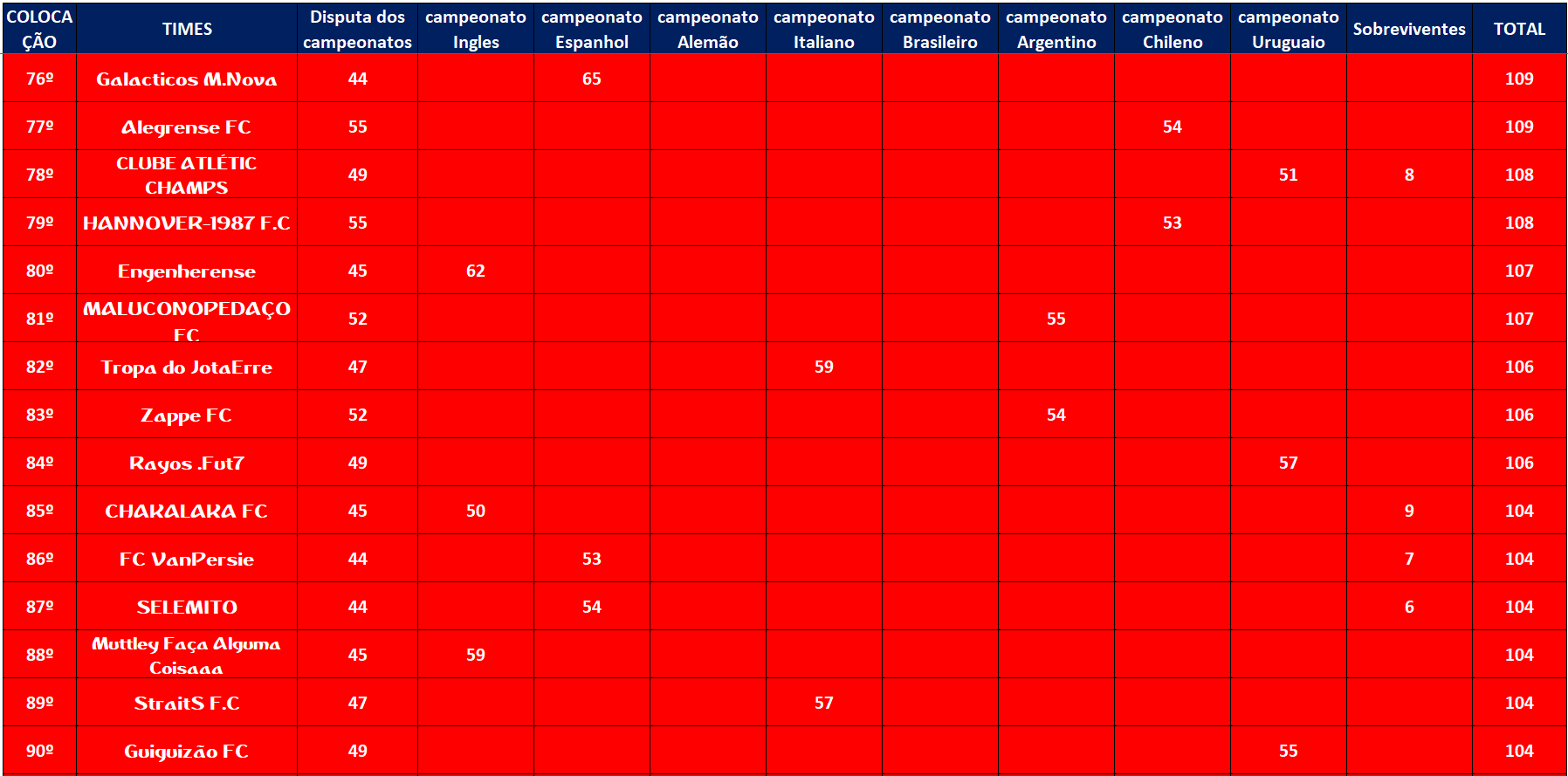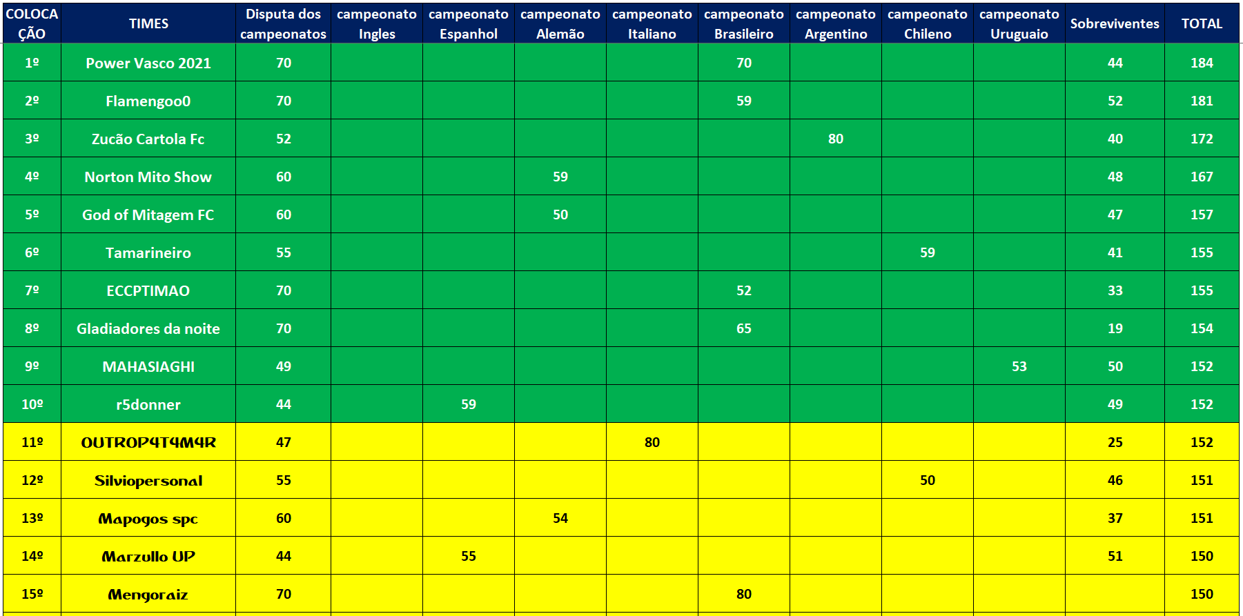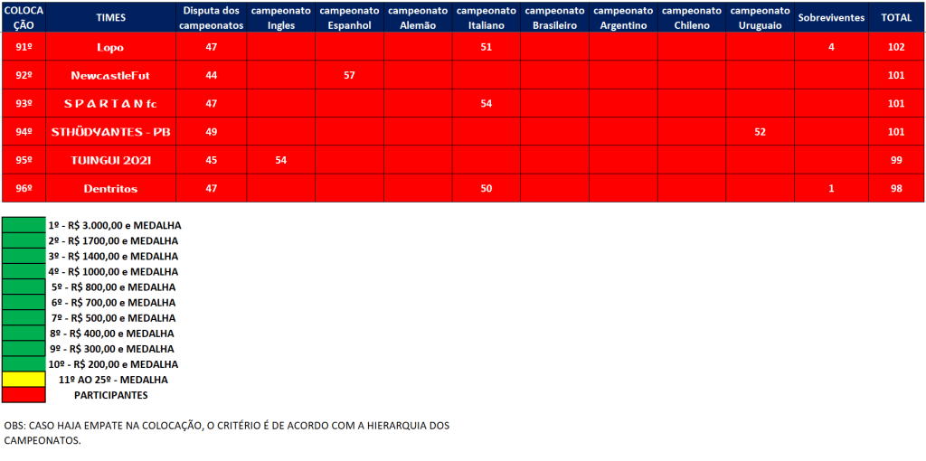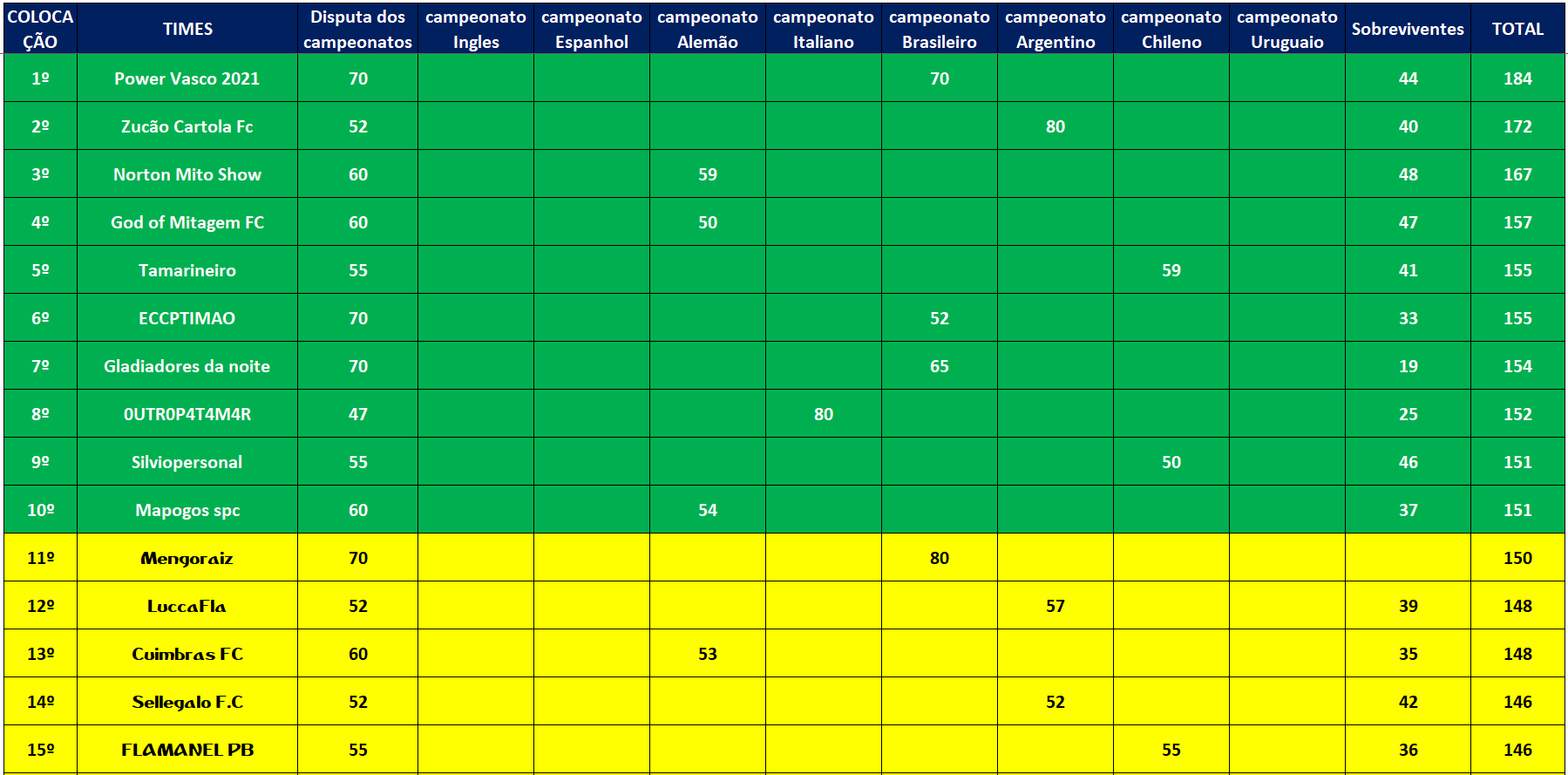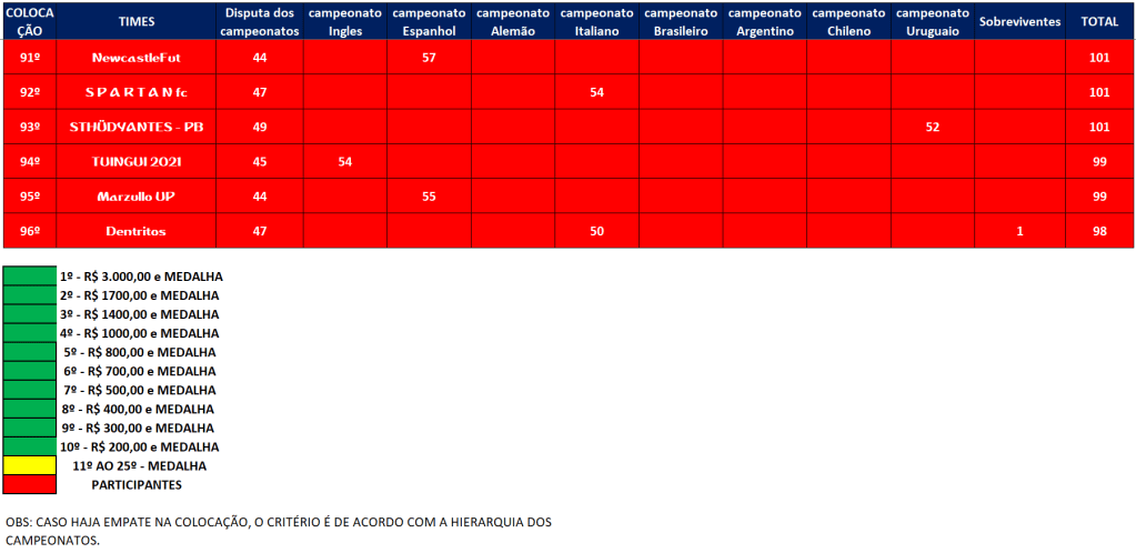 • CLASSIFICAÇÃO DISPUTAS DOS CAMPEONATOS