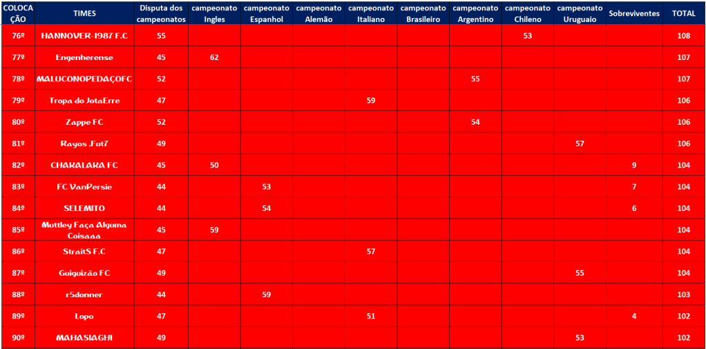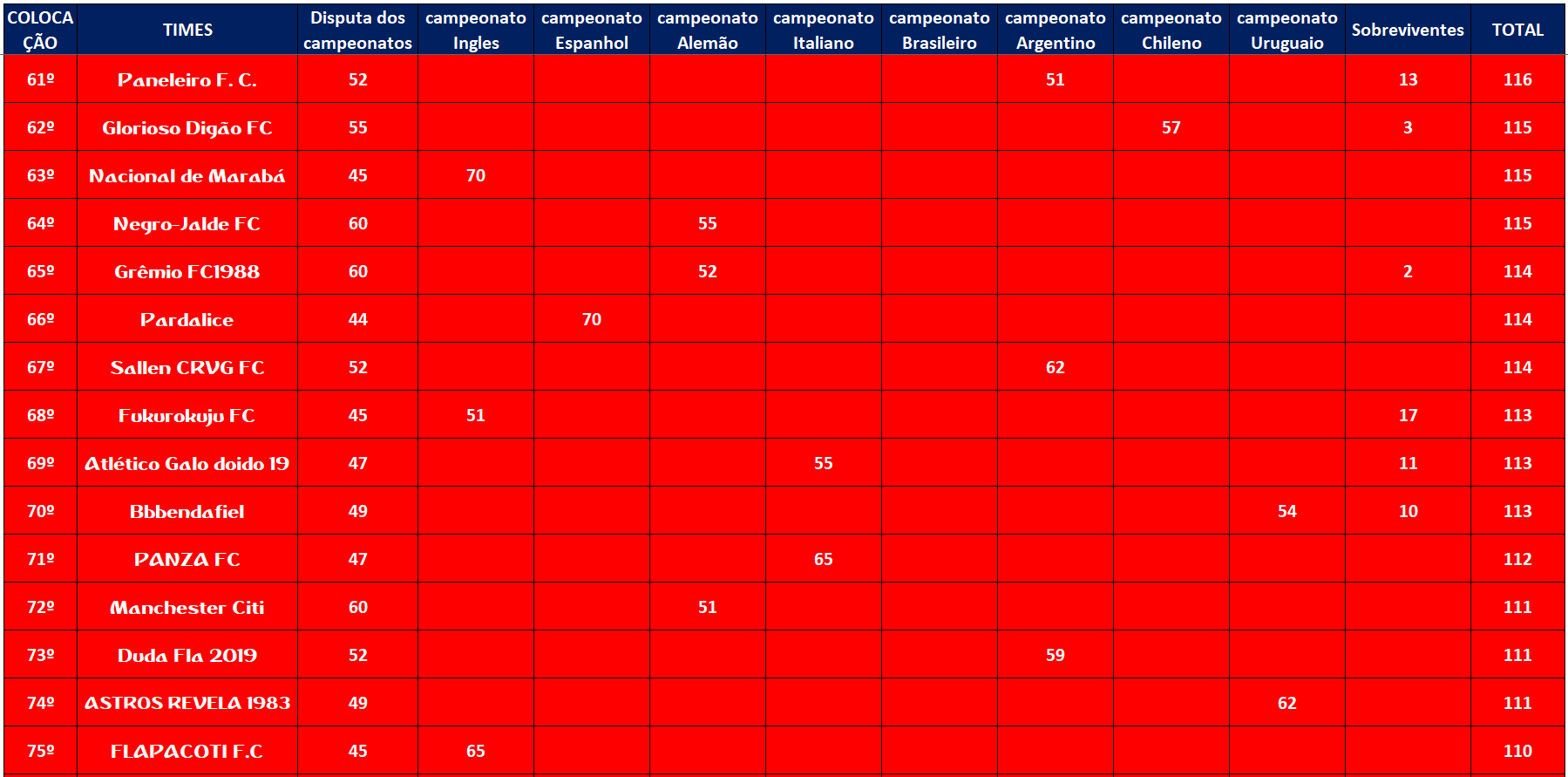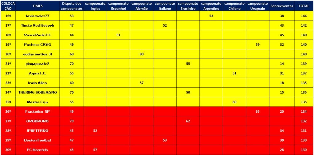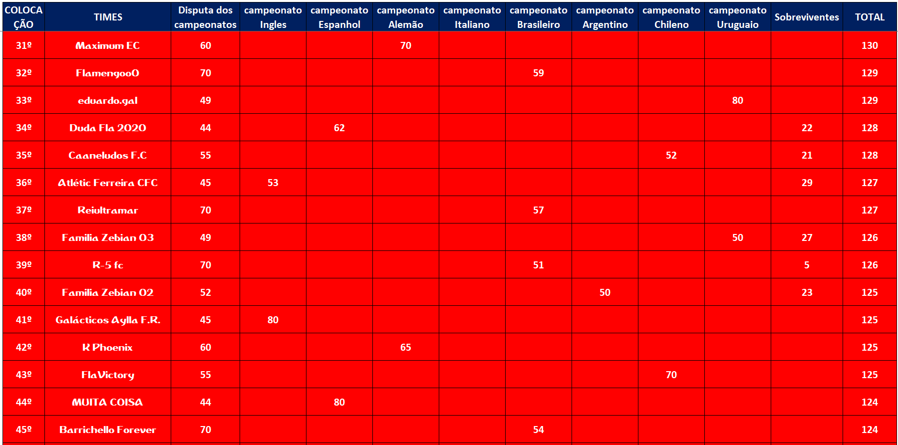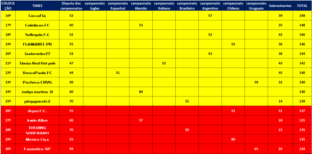 • CLASSIFICAÇÃO DISPUTAS DOS CAMPEONATOS