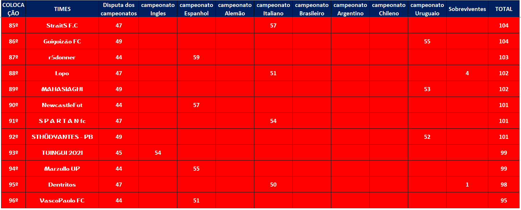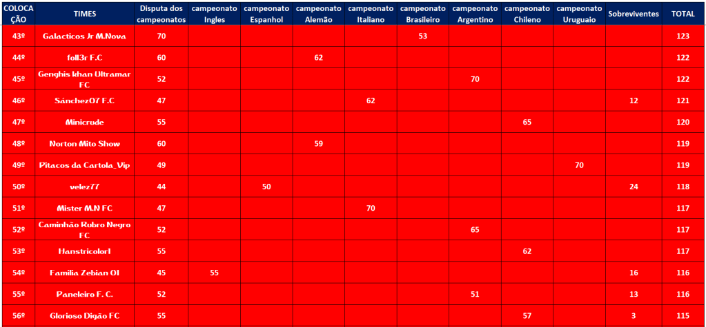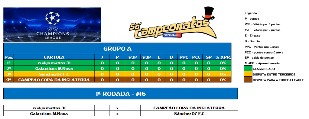 COPA DA INGLATERRA – SEMI FINAL E DISPUTA DO 5º LUGAR – IDA Publicado em 20/07/2021 por socampeonatos