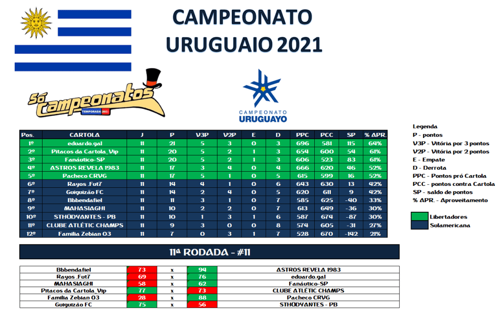 COPA DO URUGUAI – QUARTAS DE FINAIS E DISPUTA DO 9º LUGAR – VOLTA Publicado em 12/07/2021 por socampeonatos