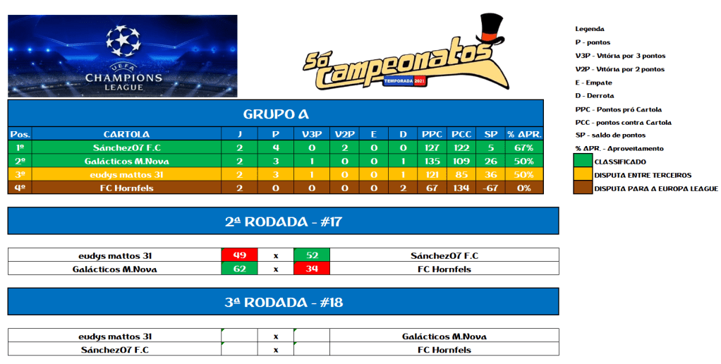 CHAMPIONS LEAGUE SOCAMPEONATOS TABELA